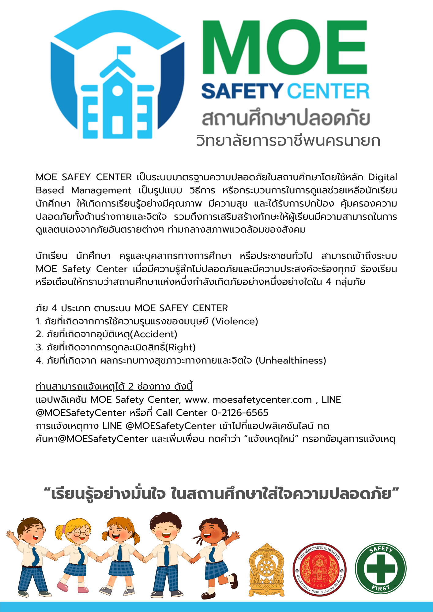 ประกาศนโยบายความปลอดภัยในสถานศึกษา วิทยา