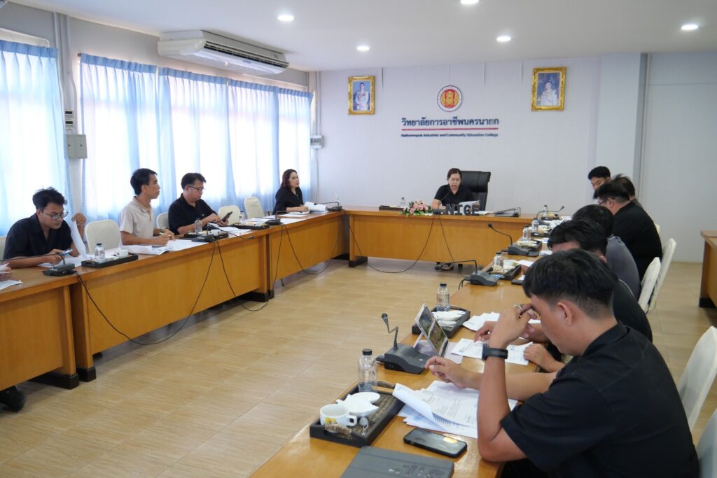 วันที่ 24 มีนาคม 2569 นางศรัญญา สุขปลั่ง ผู้อำนวยการวิทยาลัยการอาชีพนครนายก พร้อมด้วย ผู้บริหาร คณะครู และหัวหน้างานผู้รับเหมา เข้าร่วมการประชุมเตรียมความพร้อม การก่อสร้างตึกอาคารแฟลต ณ ห้องประชุมจันทร์กระจ่างฟ้า อาคารอำนวยการ วิทยาลัยอาชีพนครนายก