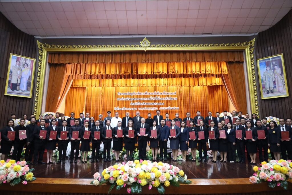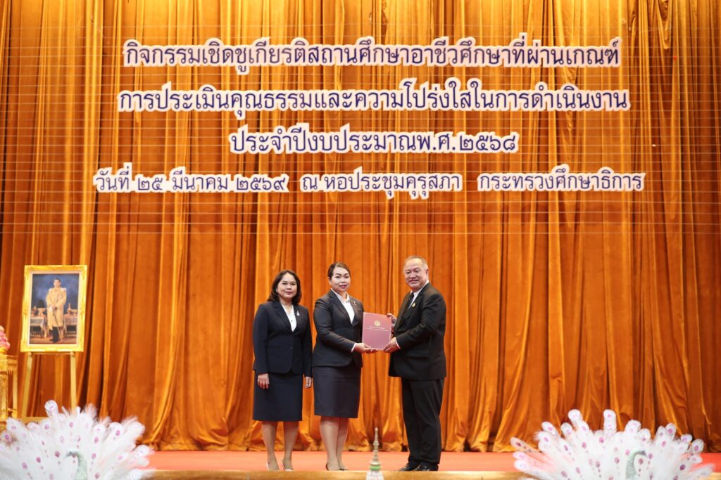 วันที่ 25 มีนาคม 2569 นางศรัญญา สุขปลั่ง ผู้อำนวยการวิทยาลัยการอาชีพนครนายก พร้อมด้วย นางรติภัทร จันทร์ส่อง รองผู้อำนวยการฝ่ายบริหารทรัพยากร วิทยาลัยการอาชีพนครนายก เข้าร่วมกิจกรรมเชิดชูเกียรติสถานศึกษาอาชีวศึกษาที่ผ่านการประเมินคุณธรรมและความโปร่งใสในการดำเนินงาน (Integrity & Transparency Assessment : ITA) ประจำปีงบประมาณ พ.ศ. 2568 ภายใต้โครงการเสริมสร้างคุณธรรม จริยธรรม และธรรมาภิบาลในสถานศึกษา แผนงานบูรณาการต่อต้านการทุจริตและประพฤติมิชอบ ประจำปีงบประมาณ พ.ศ. 2569 พร้อมรับมอบเกียรติบัตรแก่สถานศึกษาที่ผ่านระดับดี โดยมีนายยศพล เวณุโกเศศ เลขาธิการคณะกรรมการการอาชีวศึกษา เป็นประธานในพิธี ณ หอประชุมคุรุสภา กระทรวงศึกษาธิการ