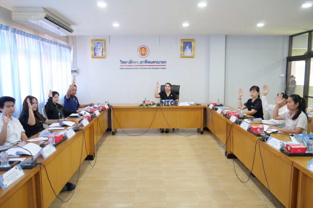วันที่ 31 มีนาคม 2569 นางศรัญญา สุขปลั่ง ผู้อำนวยการวิทยาลัยการอาชีพนครนายก พร้อมด้วย ผู้บริหาร คณะครู และนักเรียน นักศึกษา วิทยาลัยการอาชีพนครนายก เข้าร่วมระเบียบการประชุมคณะกรรมการภาคี 4 ฝ่าย ภายใต้โครงการสนับสนุนค่าใช้จ่ายในการจัดการศึกษา ตั้งแต่ระดับอนุบาลจนจบการศึกษาขั้นพื้นฐาน ภาคเรียนที่ 1 ปีการศึกษา 2569 ครั้งที่ 1/2569 ณ ห้องประชุมจันทร์กระจ่างฟ้า อาคารอำนวยการ วิทยาลัย
