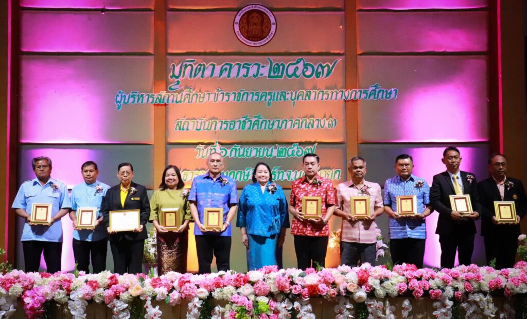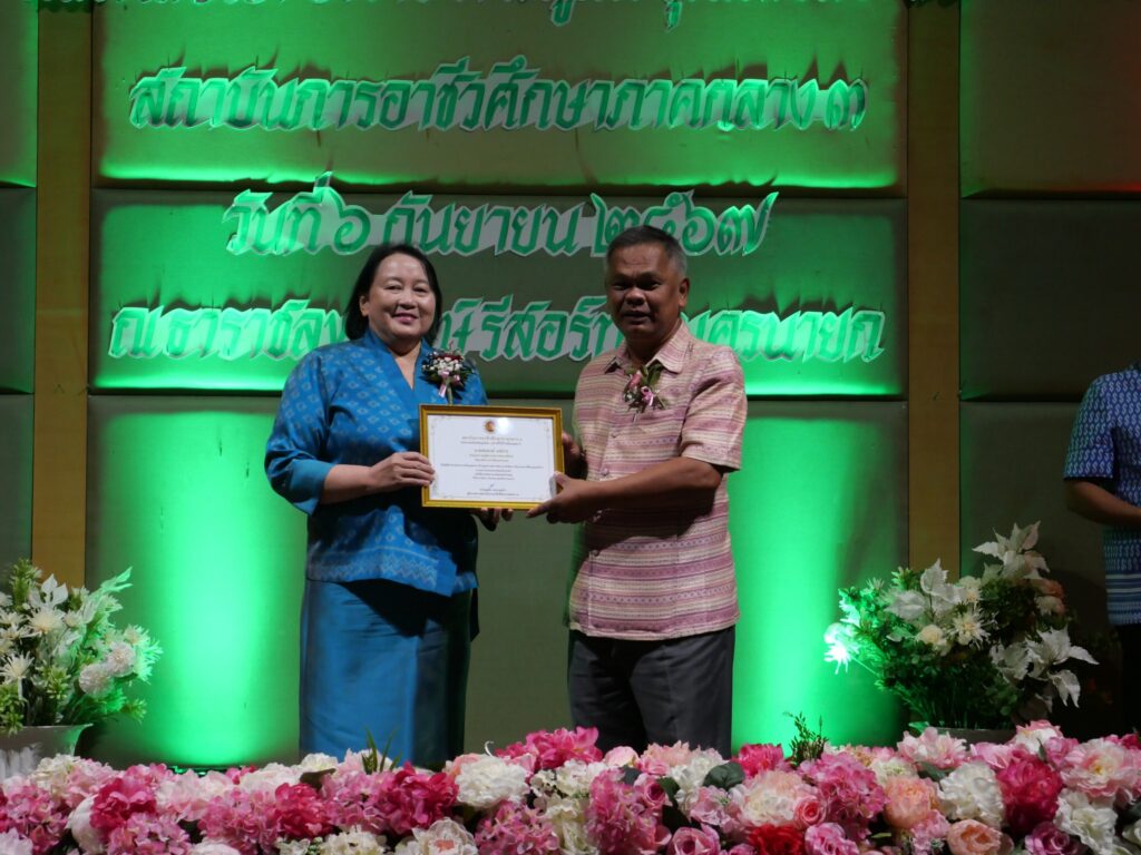 นางศรัญญา สุขปลั่ง ผู้อำนวยการวิทยาลัยการอาชีพนครนายก พร้อมด้วย นายสมพงษ์ แซ่บ่าง รองผู้อำนวยการ ผู้เกษียณอายุราชการ ผู้บริหาร และคณะครู วิทยาลัยการอาชีพนครนายก ร่วมพิธีเชิดชูเกียรติผู้มีคุณูปการต่อการอาชีวศึกษา ประจำปี 2567 สถาบันการอาชีวศึกษาภาคกลาง 3 โดย นางปัทมา วีระวานิช นายกสภาสถาบันการอาชีวศึกษาภาคกลาง 3 เป็นประธานในพิธี ณ ธารา ชลพฤกษ์ รีสอร์ท จังหวัดนครนายก