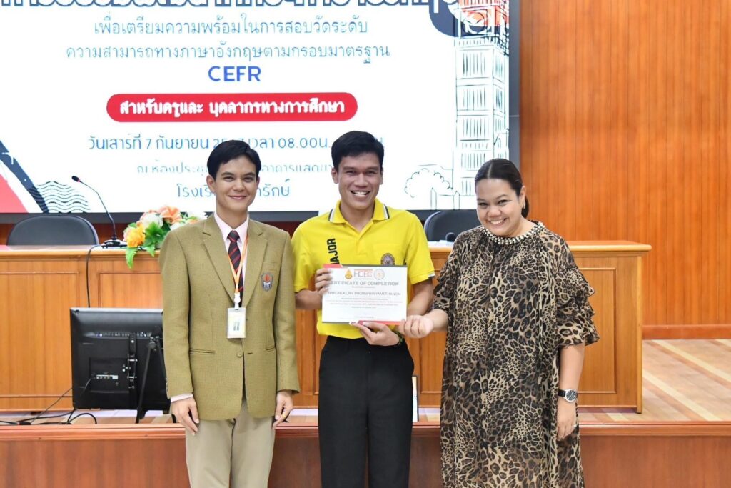 คุณครูณรงค์กร พรพิริยะเมธานนท์ ครูแผนกวิชาสัมพันธ์ เข้าร่วมการอบรมพัฒนาทักษะภาษาอังกฤษเพื่อเตรียมความพร้อมในการสอบวัดระดับความสามารถทางภาษาอังกฤษตามกรอบมาตรฐาน CEFR สำหรับครูและบุคลากรทางการศึกษา ณ ห้องประชุมแสดขาวโรงเรียนองครักษ์