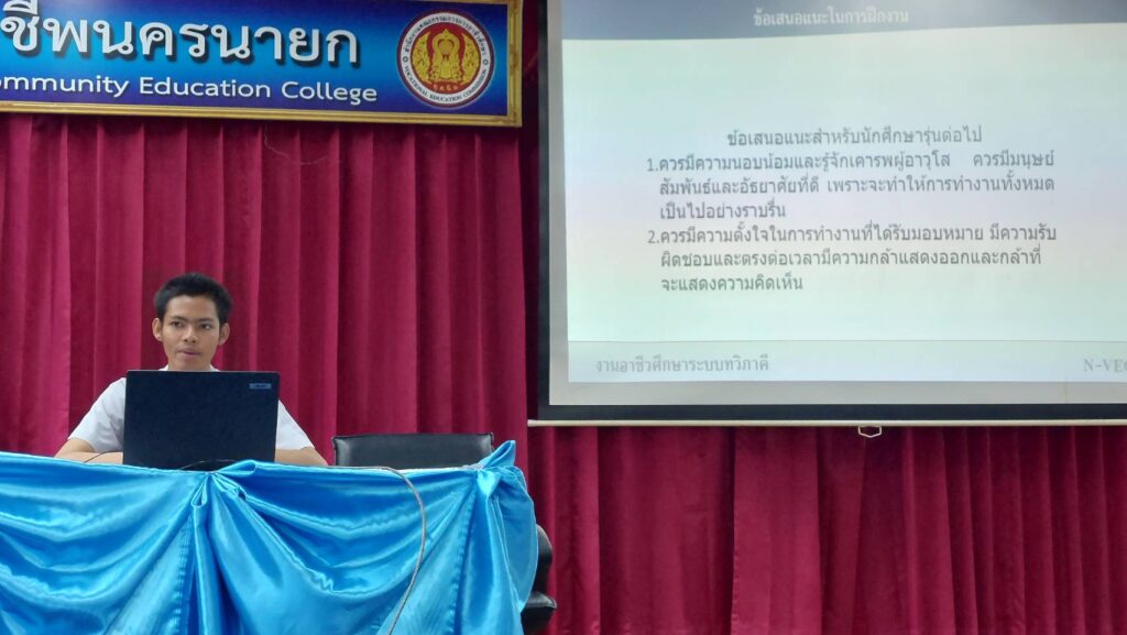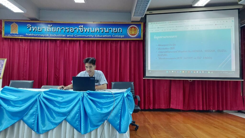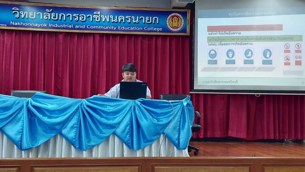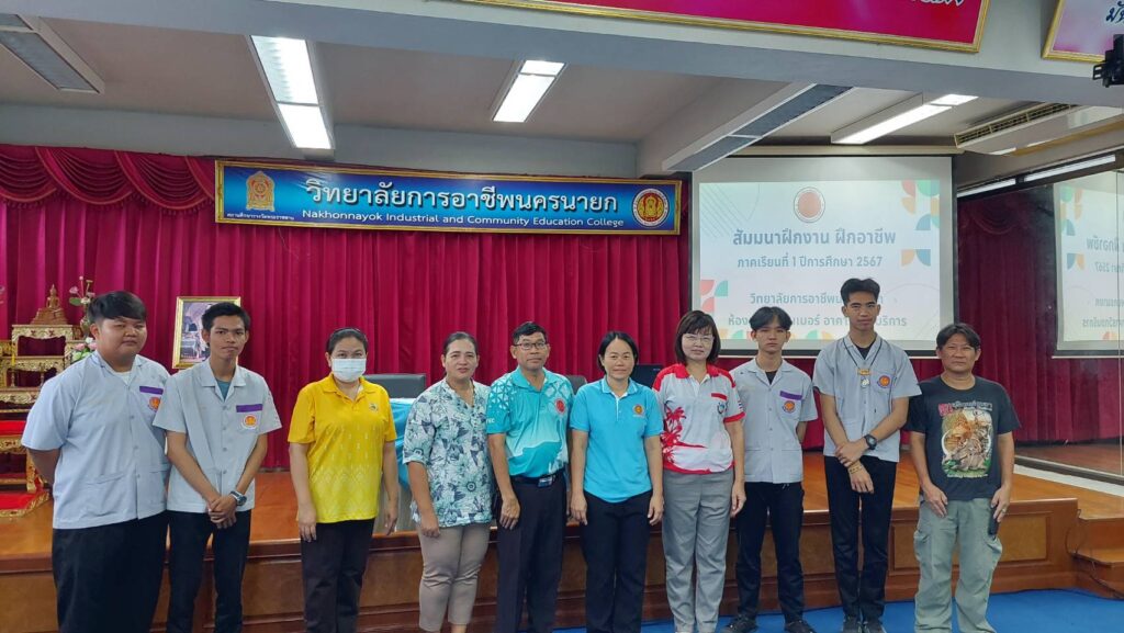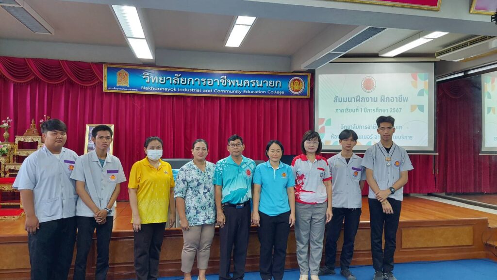 นางภัคจิรา จิตรมิตร ครูชำนาญการพิเศษ ทำหน้าที่รองผู้อำนวยการฝ่ายวิชาการ พร้อมด้วย นางพัชรินทร์ วิลัยโรจน์ คณะครูแผนกวิชาช่างอิเล็กทรอนิกส์ และนักศึกษา แผนกวิชาช่างอิเล็กทรอนิกส์ วิทยาลัยการอาชีพนครนายก เข้าร่วมสัมมนา ฝึกงาน ฝึกอาชีพ ประจำภาคเรียนที่ 1 ของนักศึกษาสาขางานอิเล็กทรอนิกส์อุตสาหกรรม ระดับ ประกาศนียบัตรวิชาชีพชั้นสูง (ปวส.2) ณ ห้องเฟรนคอนเนอร์ วิทยาลัยการอาชีพนครนายก