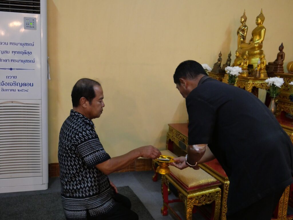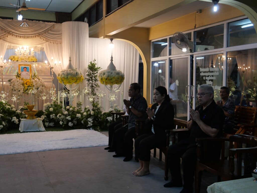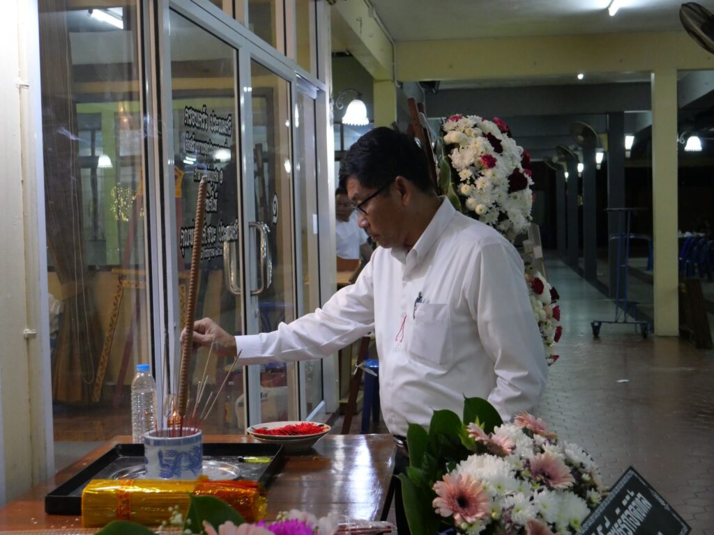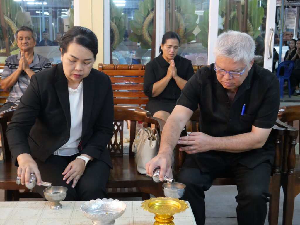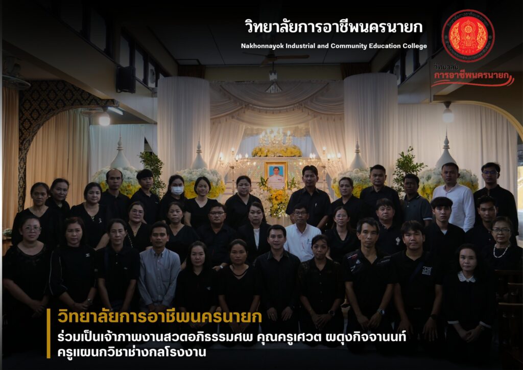 นางศรัญญา สุขปลั่ง ผู้อำนวยการวิทยาลัยการอาชีพนครนายก พร้อมด้วย ผู้บริหาร คณะครู บุคลากรทางการศึกษา วิทยาลัยการอาชีพนครนายก ร่วมพิธีรดน้ำศพ และร่วมเป็นเจ้าภาพงานสวดอภิธรรมศพ คุณครูเศวต ผดุงกิจจานนท์ ครูแผนกวิชาช่างกลโรงงาน วิทยาลัยการอาชีพนครนายก ณ วัดแจ้งเจริญดอน ตำบลแสนสุข อำเภอเมือง จังหวัดชลบุรี
