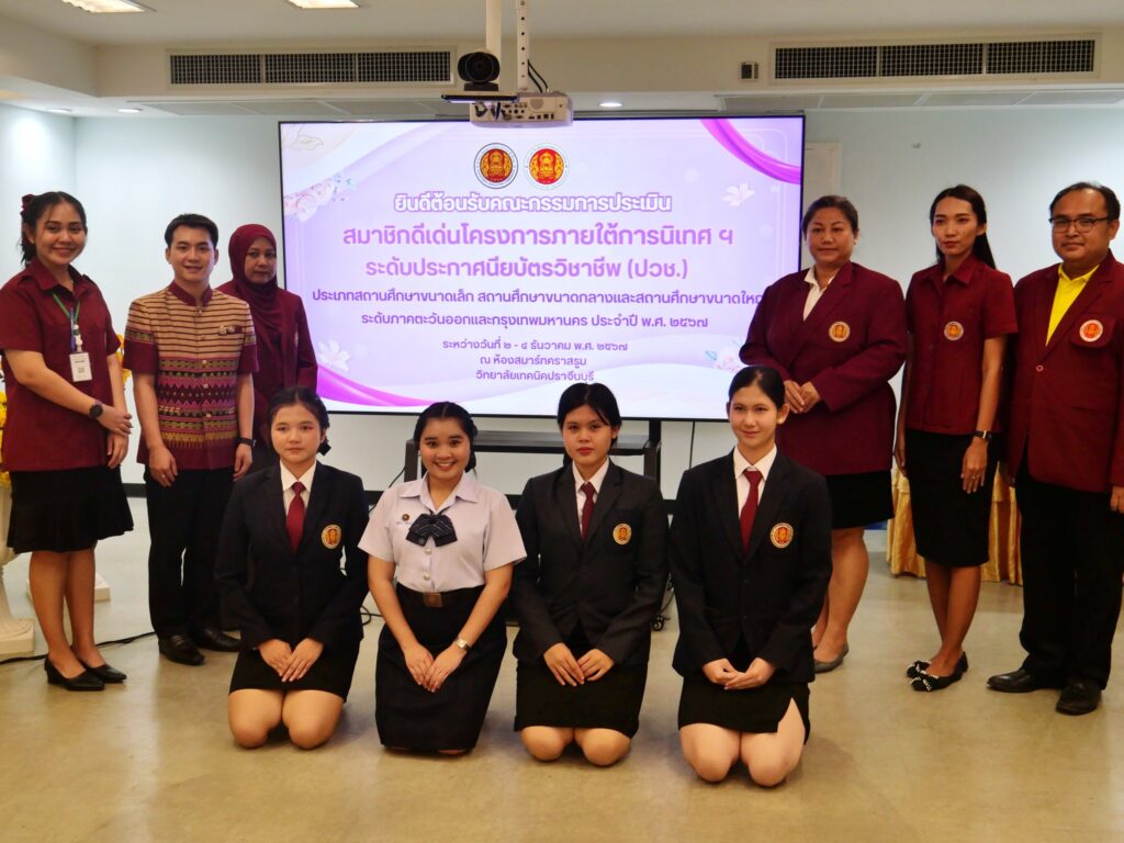 วันที่ 3 ธันวาคม 2567 นายธันยวัฒน์ เชิญแก้ว ครูที่ปรึกษา พร้อมด้วย นางสาวณัฐวรา เธียรโชติ นักเรียนระดับประกาศนียบัตรวิชาชีพ (ปวช.2) แผนกวิชาการบัญชี เข้าร่วมการประเมินสมาชิกดีเด่นโครงการภายใต้การนิเทศ องค์การนักวิชาชีพในอนาคตแห่งประเทศไทย ระดับประกาศนียบัตรวิชาชีพชั้น (ปวช.) ประเภทสถานศึกษาขนาดเล็ก ระดับภาคตะวันออกและกรุงเทพมหานคร ประจำปีการศึกษา 2567 ณ ห้องสมาร์ทคราสรูม วิทยาลัยเทคนิคปราจีนบุรี