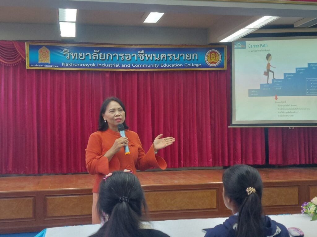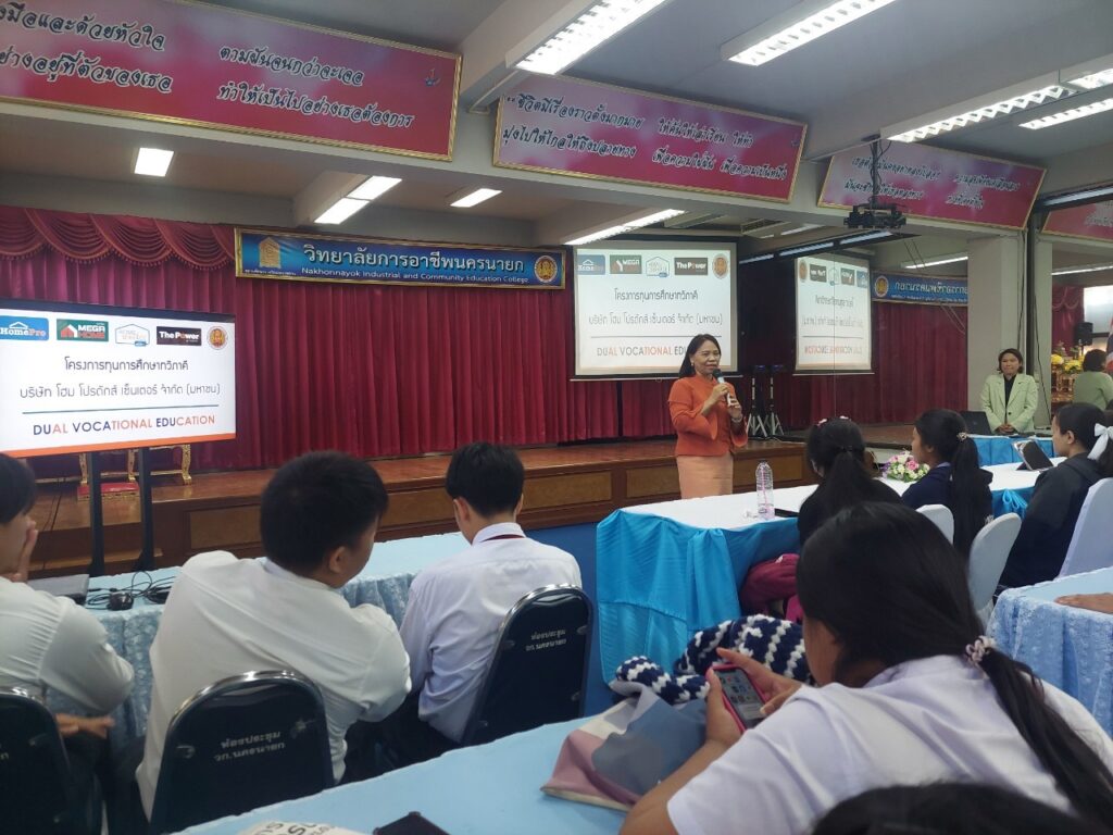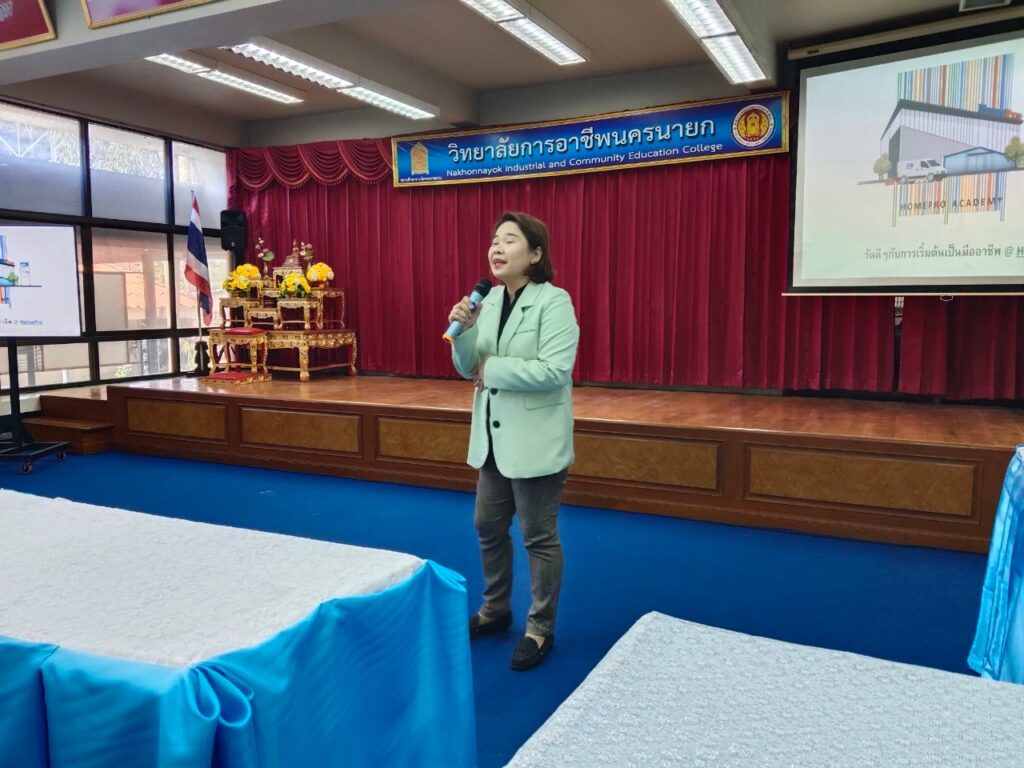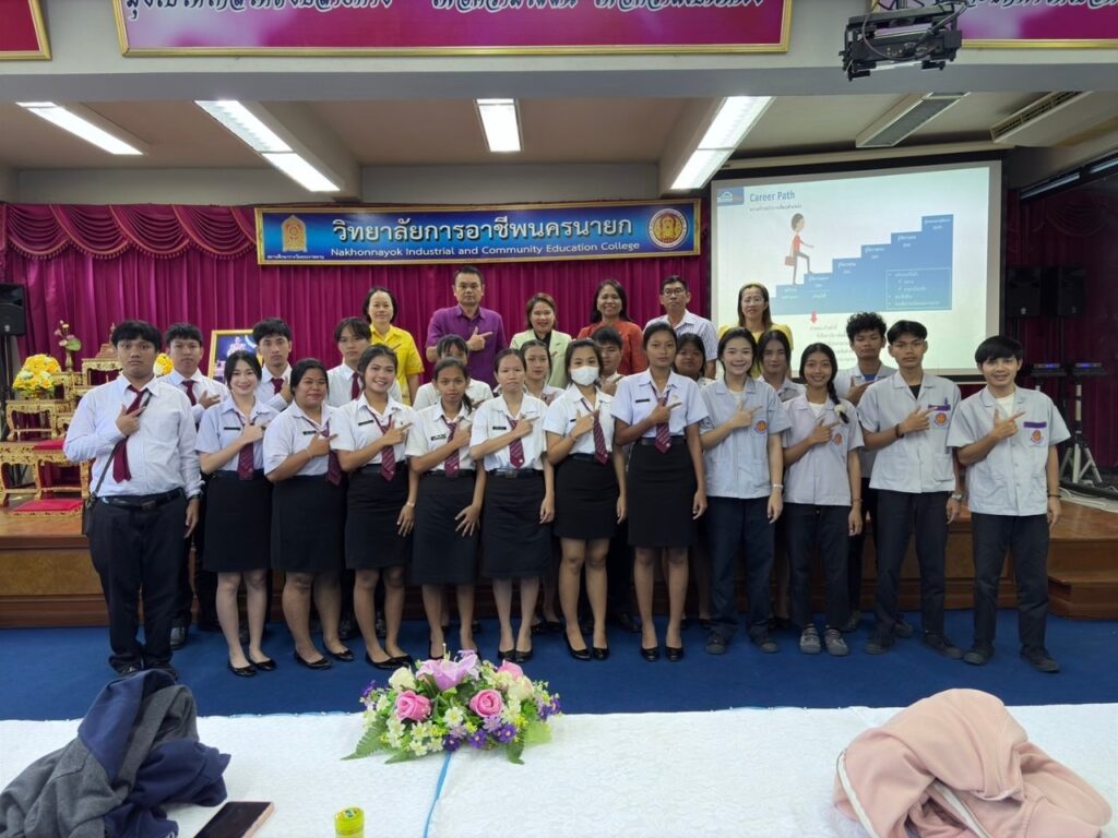 วันที่ 3 ธันวาคม 2567 นางสาวปานรดา มุ่งยุทธกลาง รองผู้อำนวยการฝ่ายวิชาการ พร้อมด้วย นางพัชรินทร์ วิลัยโรจน์ หัวหน้างานอาชีวศึกษาระบบทวิภาคี คณะครู และนักเรียน นักศึกษาสาขาวิชาเทคโนโลยีอิเล็กทรอนิกส์ และสาขาวิชาเทคโนโลยีธุรกิจดิจิทัล เข้าร่วมรับฟังแนะแนวโครงการทุนการศึกษาทวิภาคี การรับนักศึกษาฝึกอาชีพ สิทธิประโยชน์ที่นักศึกษาได้รับระหว่างการฝึก โดยบริษัท โฮม โปรดักส์ เซ็นเตอร์ จำกัด (มหาชน) ฝ่ายบริหารการศึกษา ณ ห้องเฟรนคอนเนอร์ อาคารวิทยบริการ วิทยาลัยการอาชีพนครนายก