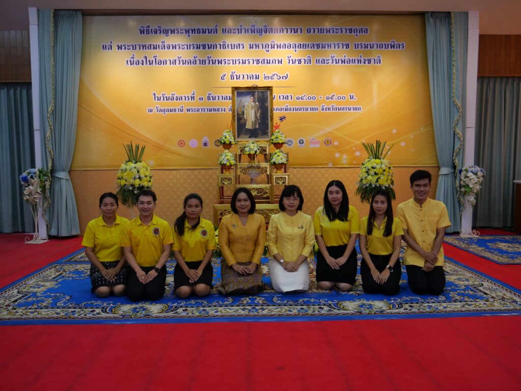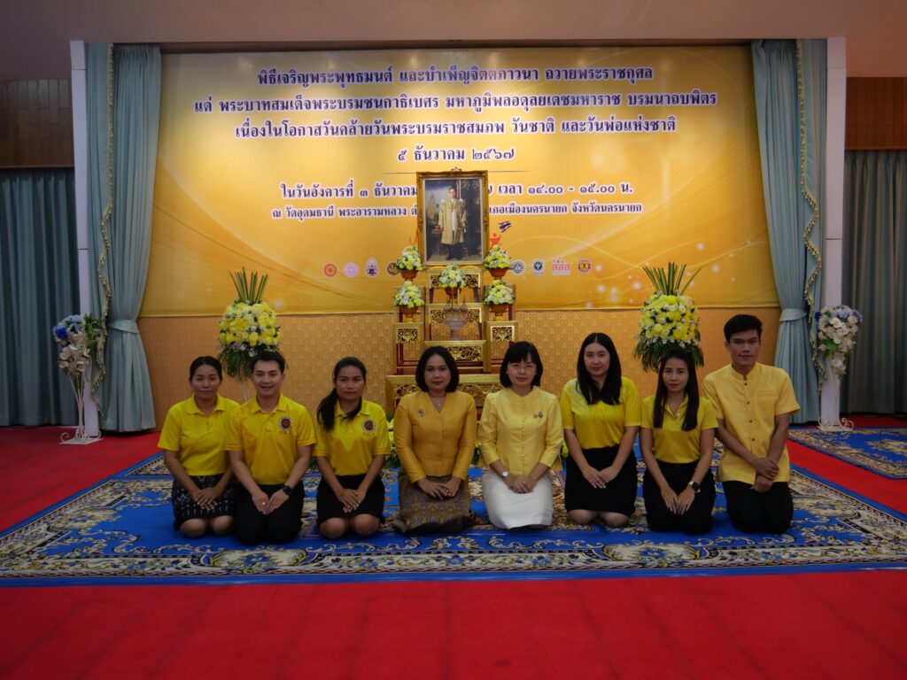 วันที่ 3 ธันวาคม 2567 นางรติภัทร จันทร์ส่อง รองผู้อำนวยการฝ่ายพัฒนากิจการนักเรียน นักศึกษา วิทยาลัยการอาชีพนครนายก พร้อยด้วย คณะครูแผนกวิชาสามัญสัมพันธ์และบุคลากรทางการศึกษา วิทยาลัยการอาชีพนครนายก เข้าร่วมพิธีเจริญพระพุทธมนต์ และบำเพ็ญจิตภาวนา ถวายพระราชกุศลแด่ พระบาทสมเด็จพระบรมชนกาธิเษศรมหาภูมิพลอดุลยเดชมหาราช บรมนาถบพิตร วันชาติ และวันพ่อแห่งชาติ 5 ธันวาคม 2567 ในวันอังคารที่ 3 ธันวาคม 2567 ณ วัดอุดมธานี พระอารามหลวง อำเภอเมืองนครนายก จังหวัดนครนายก
