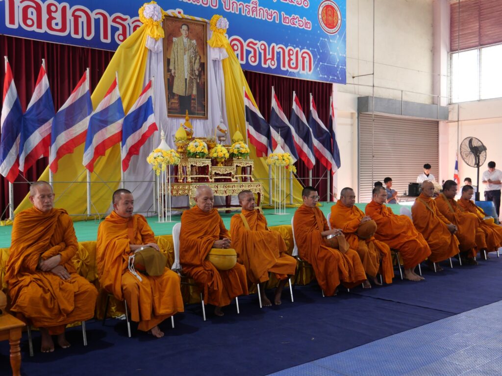 วันที่ 4 ธันวาคม 2567 นางศรัญญา สุขปลั่ง ผู้อำนวยการวิทยาลัยการอาชีพนครนายก พร้อมด้วย ผู้บริหาร คณะครู บุคลากรทางการศึกษา และนักเรียน นักศึกษา วิทยาลัยการอาชีพนครนายก ร่วมพิธีทำบุญตักบาตรถวายพระราชกุศล เนื่องในวันคล้ายวันพระราชมภพ พระบาทสมเด็จพระบรมชนกาธิเษศร มหาภูมิพลอดุลยเดชมหาราชบรมนาถบพิตร วันชาติ และวันพ่อแห่งชาติ ประจำปี 2567 ณ อาคารกีฬาอเนกประสงค์ วิทยาลัยการอาชีพนครนายก
