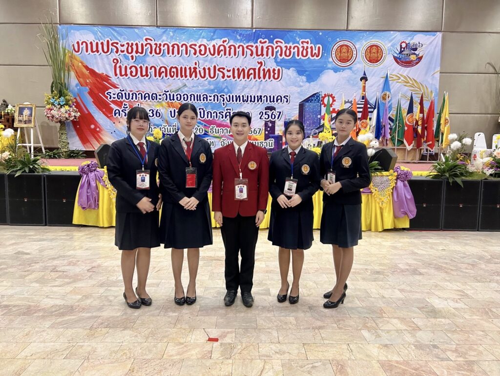 วันที่ 20 ธันวาคม 2567 นายธันยวัฒน์ เชิญแก้ว ครูที่ปรึกษา (อวท.) พร้อมด้วย นักศึกษาองค์การนักวิชาชีพในอนาคตแห่งประเทศไทย วิทยาลัยการอาชีพนครนายก เข้าร่วมร่วมงานประชุมองค์การนักวิชาชีพในอนาคตแห่งประเทศไทย (อวท.) ระดับภาคตะวันออกและกรุงเทพมหานคร ครั้งที่ 36 ประจำปีการศึกษา 2567 ในระหว่างวันที่ 17 – 20 ธันวาคม 2567 ณ โรงแรมเดอะไพน์รีสอร์ท จังหวัดปทุมธานี