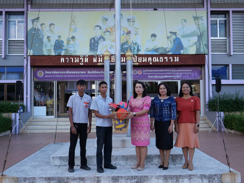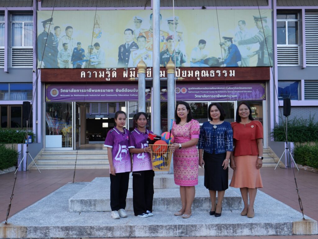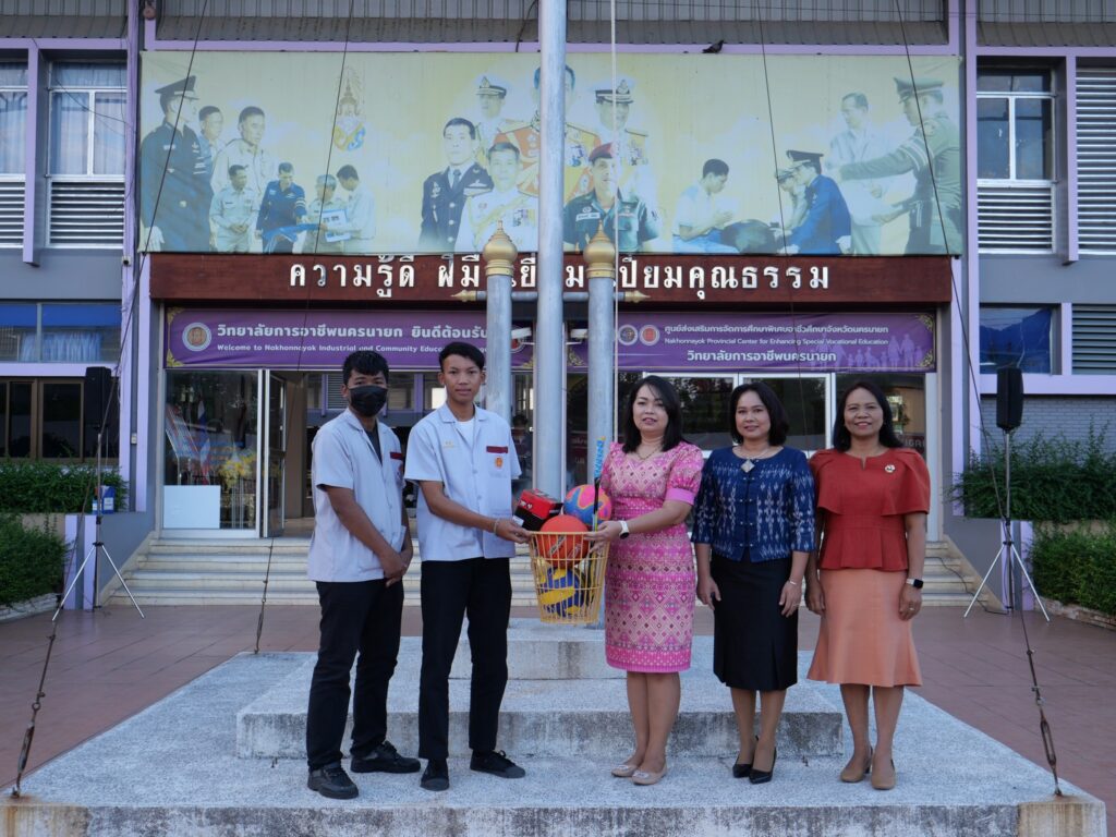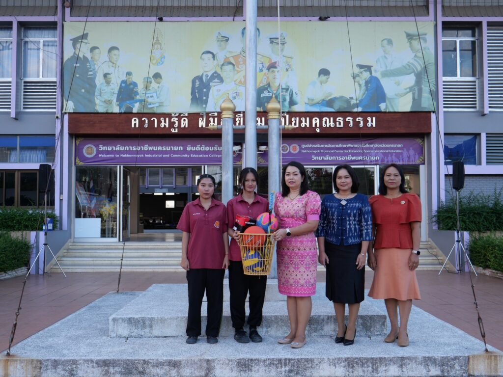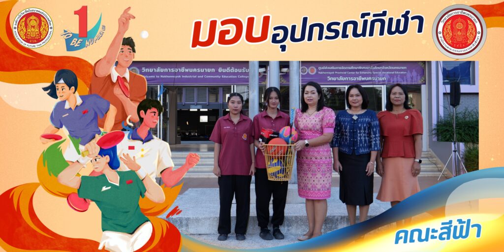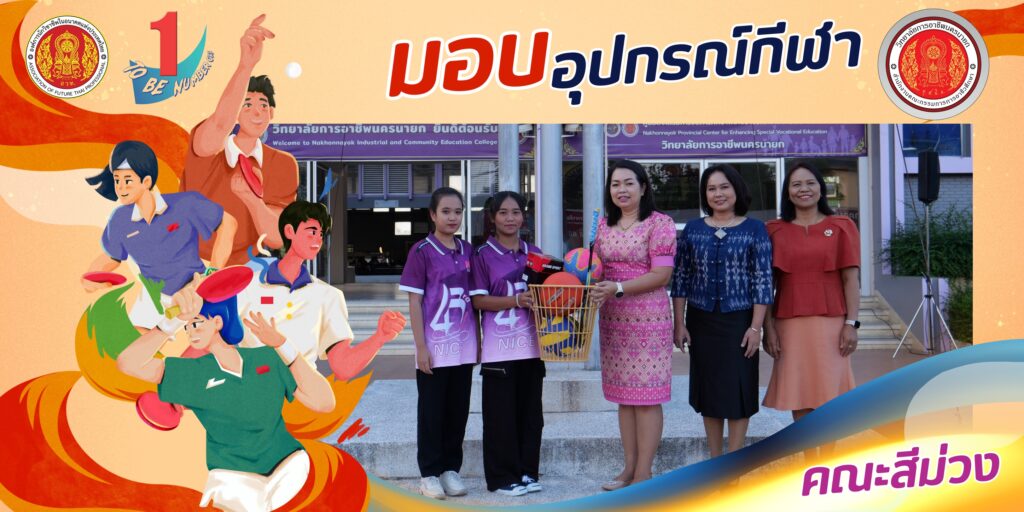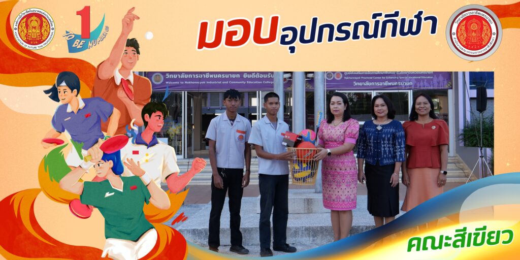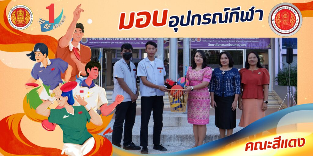 วันที่ 24 ธันวาคม 2567 นางศรัญญา สุขปลั่ง ผู้อำนวยการวิทยาลัยการอาชีพนครนายก พร้อมด้วย นางรติภัทร จันทร์ส่อง รองผู้อำนวยการฝ่ายพัฒนากิจการนักเรียน นักศึกษา และนางสาวปานรดา มุ่งยุทธกลาง รองผู้อำนวยการฝ่ายวิชาการ มอบอุปกรณ์กีฬาให้กับนักเรียน นักศึกษาแต่ละคณะสี เพื่อฝึกซ้อมและทำการแข่งขันในรอบคัดเลือก ณ หน้าเสาธง วิทยาลัยการอาชีพนครนายก
