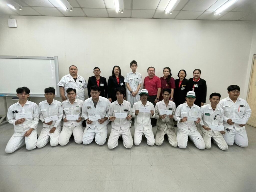 วันที่ 25 ธันวาคม 2567 นางศรัญญา สุขปลั่ง ผู้อำนวยการวิทยาลัยการอาชีพนครนายก พร้อมด้วย นางพัชรินทร์ วิลัยโรจน์ หัวหน้างานอาชีวศึกษาระบบทวิภาคี และคณะครูแผนกวิชาอิเล็กทรอนิกส์ เข้าร่วมการมอบทุนการศึกษา สำหรับนักศึกษาฝึกอาชีพ โดยบริษัท เบสเท็กซ์ (ประเทศไทย) จำกัด มอบทุนให้กับนักศึกษาสาขางานอิเล็กทรอนิกส์อุตสาหกรรม ระบบทวิภาคี เพื่อเป็นการตอบแทนในความวิริยะ อุตสาหะ ณ บริษัท เบสเท็กซ์ (ประเทศไทย) จำกัด จังหวัดพระนครศรีอยุธยา