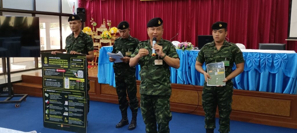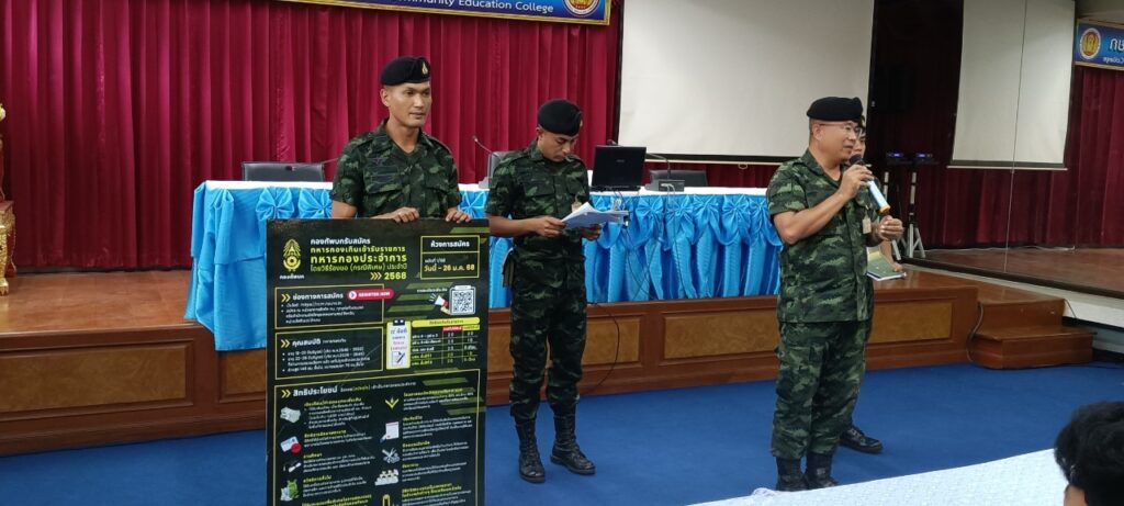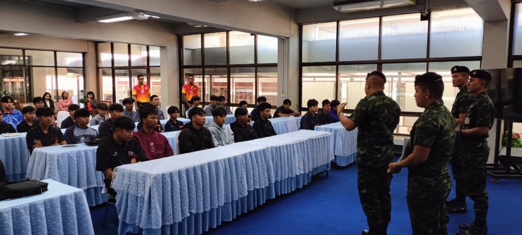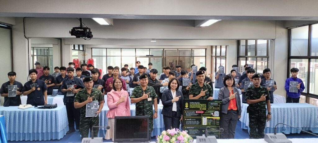 นางรติภัทร จันทร์ส่อง รองผู้อำนวยการฝ่ายพัฒนากิจการนักเรียน นักศึกษา พร้อมด้วย นางสาวปานรดา มุ่งยุทธกลาง รองผู้อำนวยการฝ่ายวิชาการ คุณครูภัคจิรา จิตรมิตร และนักเรียน นักศึกษา วิทยาลัยการอาชีพนครนายก ร่วมกิจกรรมการบรรยายให้ความรู้ เรื่องการใช้สิทธิประโยชน์ทหาร โดย กองพันทหารราบ โรงเรียนนายร้อยพระจุลจอมเกล้า จปร. ณ ห้องประชุมเฟรนคอนเนอร์ วิทยาลัยการอาชีพนครนายก