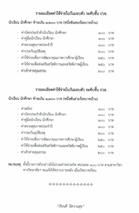 รายละเอียดการมอบตัวและค่าใช้จ่าย สามารถดูข้อมูลได้ตามประกาศหน้าสุดท้าย