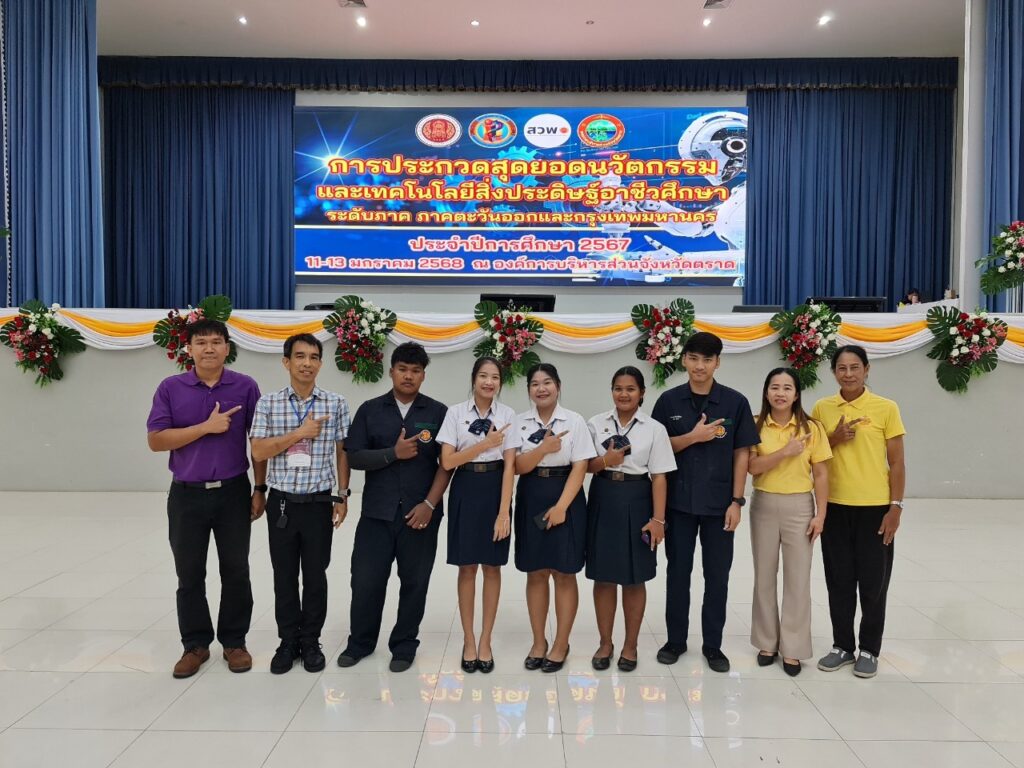 นางณัฐกานต์ เหรียญทอง หัวหน้าแผนกวิชาคอมพิวเตอร์ธุรกิจ พร้อมด้วย นางนภัสนันท์ สิงเพียง หัวหน้าแผนกวิชาคหกรรมศาสตร์ นายไชยวัฒน์ อุ่นชื่น ครูแผนกวิชาช่างเชื่อมโลหะ และนักเรียน นักศึกษา วิทยาลัยการอาชีพนครนายก เข้าร่วมการประกวดสุดยอดนวัตกรรมและเทคโนโลยีสิ่งประดิษฐ์อาชีวศึกษา ระดับภาค ภาคตะวันออกและกรุงเทพมหานคร ประจำปีการศึกษา 2567 ในระหว่างวันที่ 11 – 13 มกราคม 2568 โดยมี นายสง่า แต่เชื้อสาย รองเลขาธิการคณะกรรมการการอาชีวศึกษา เป็นประธานในพิธีเปิด และ ดร.นิรุตต์ บุตรแสนลี ผู้อำนวยการสำนักวิจัยและพัฒนาการอาชีวศึกษา เป็นประธานในพิธีปิด ณ หอประชุมองค์การบริหารส่วนจังหวัดตราด