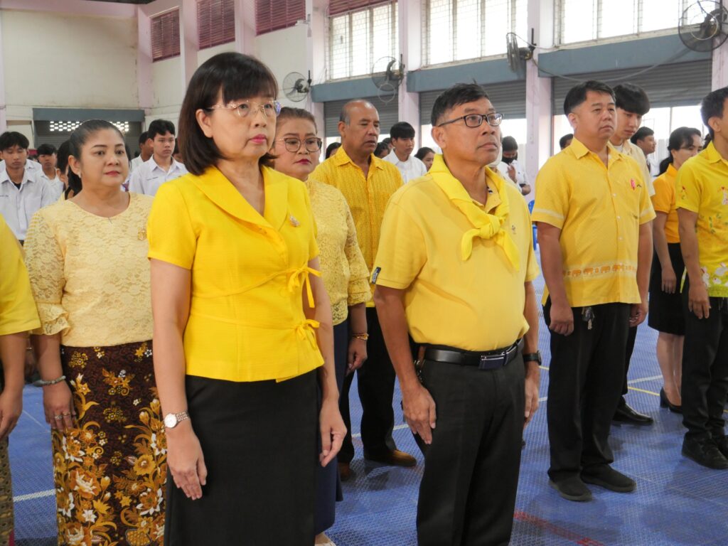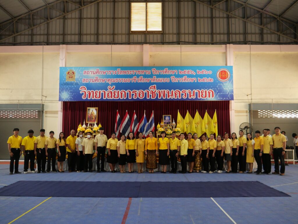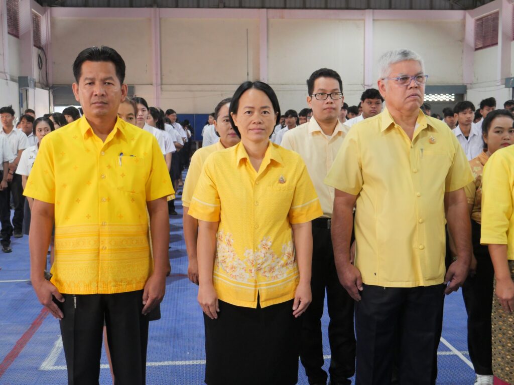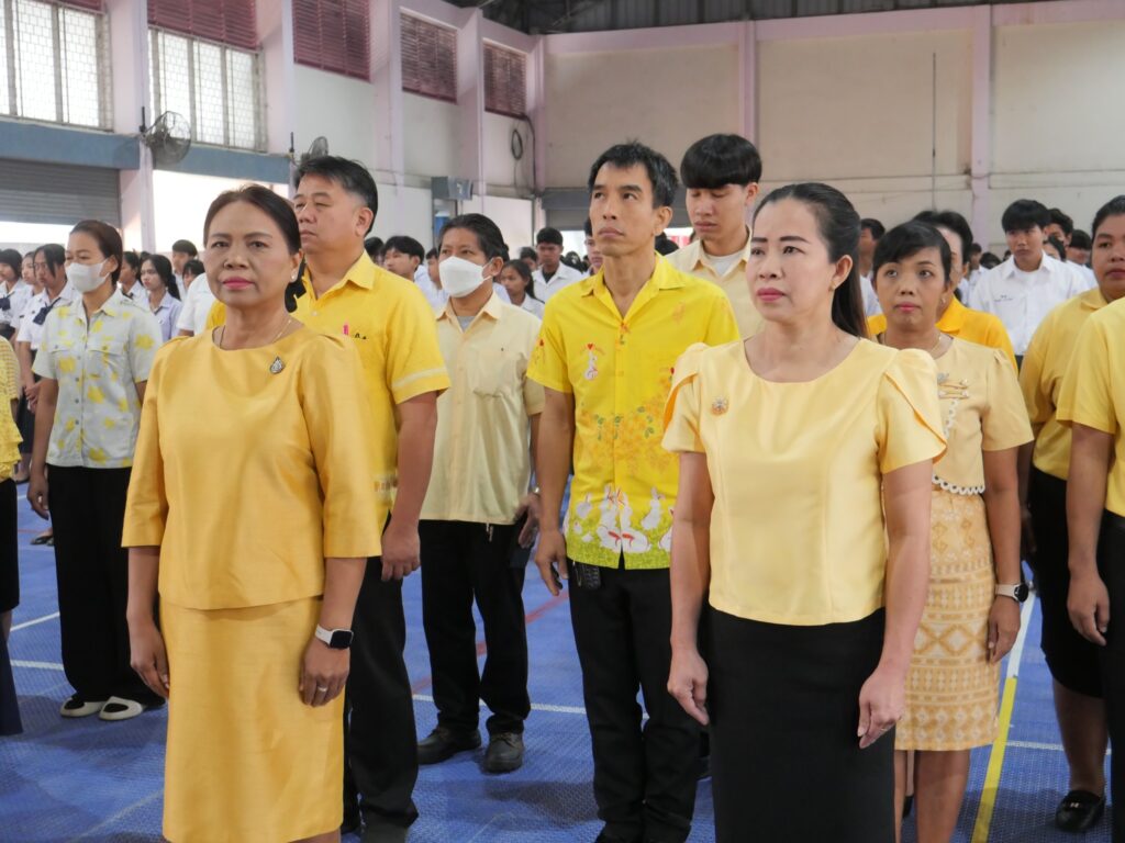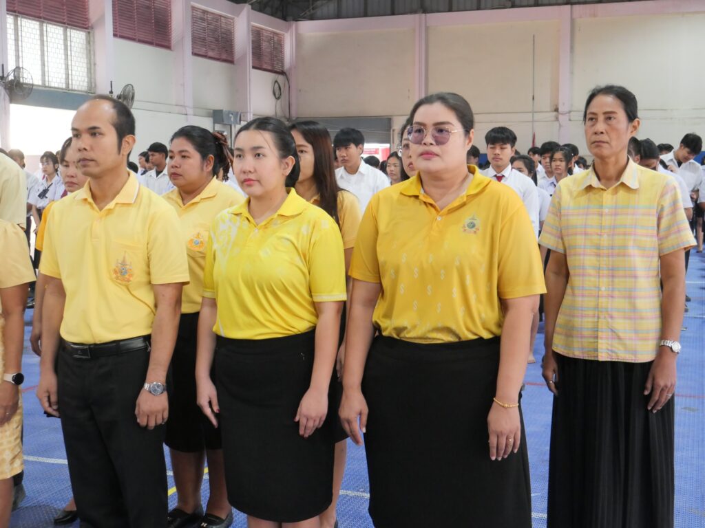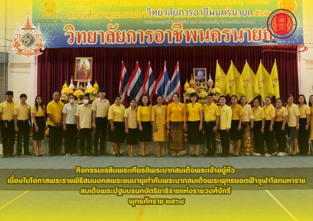 นางศรัญญา สุขปลั่ง ผู้อำนวยการวิทยาลัยการอาชีพนครนายก พร้อมด้วย ผู้บริหาร คณะครู บุคลากรทางการศึกษา และนักเรยีน นักศึกษา วิทยาลัยการิอาชีพนครนายก เข้าร่วมกิจกรรมเฉลิมพระเกียรติพระบาทสมเด็จพระเจ้าอยู่หัว เนื่องในโอกาสพระราชพิธีสมมงคลพระชนมายุเท่าพระบาทสมเด็จพระพุทธยอดฟ้าจุฬาโลกมหาราช สมเด็จพระปฐมบรมกษัตริยาธิราชแห่งพระราชวงศ์จักรี พุทธศักราช 2568 ณ อาคารกีฬาอเนกประสงค์ วิทยาลัยการอาชีพนครนายก