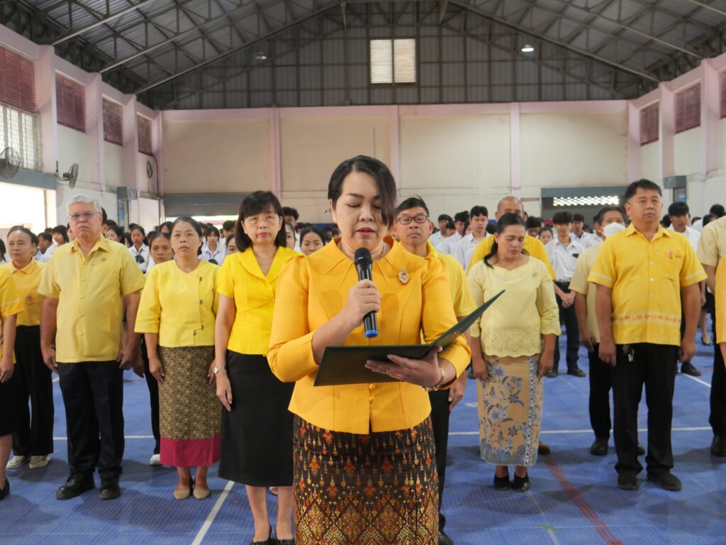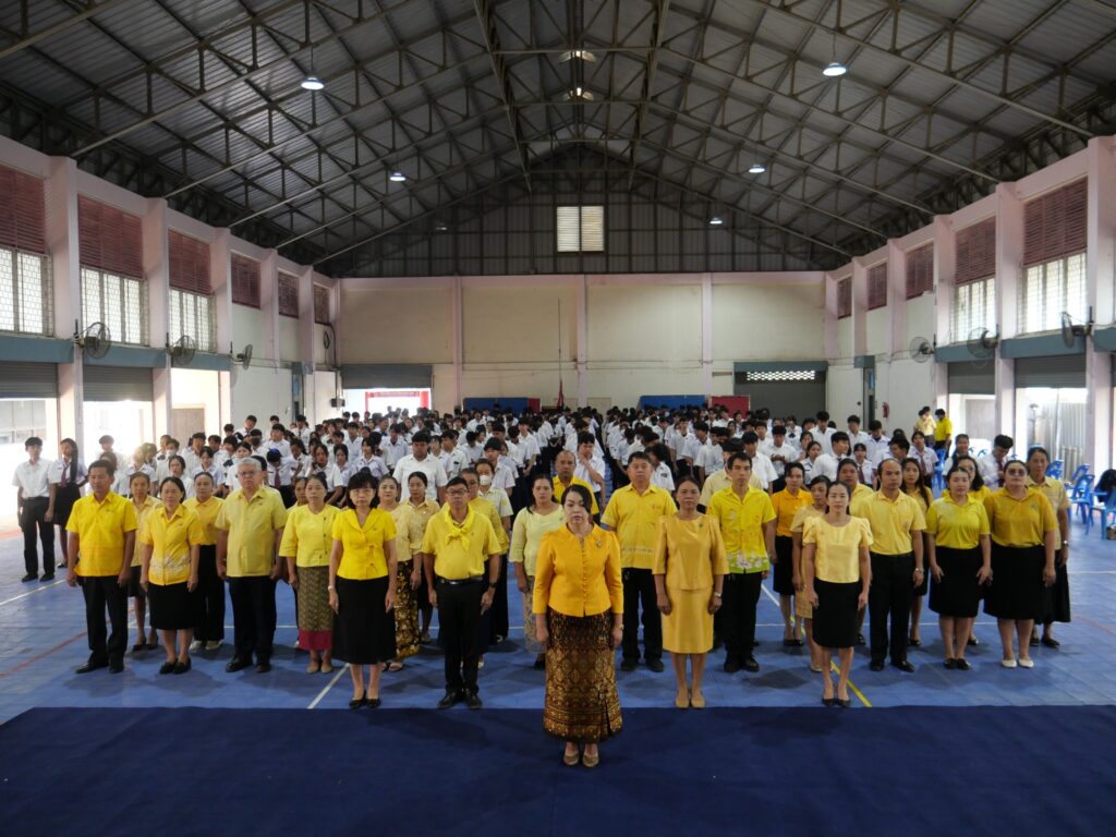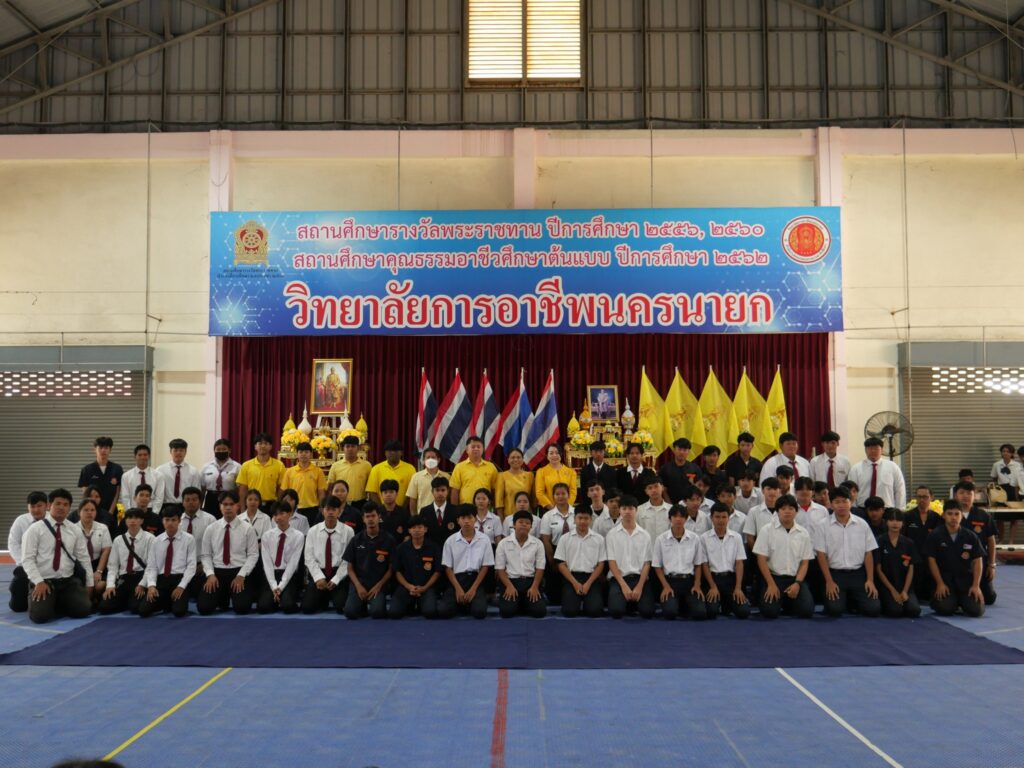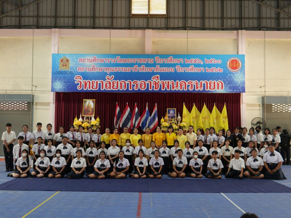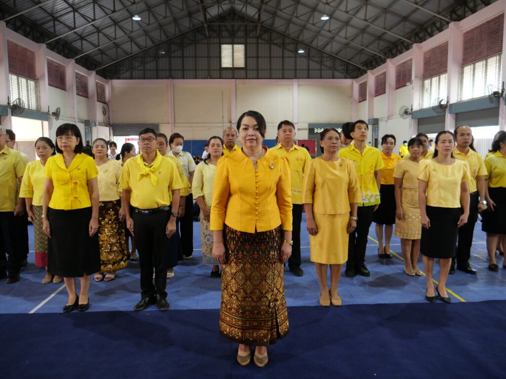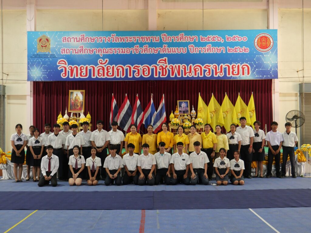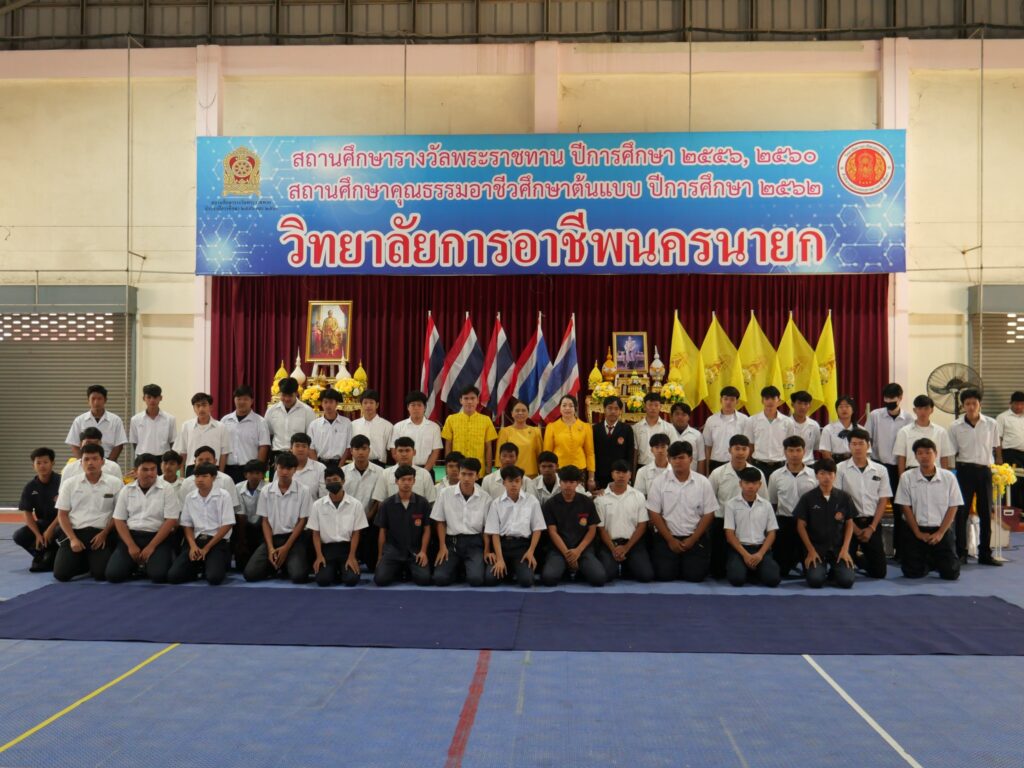 นางศรัญญา สุขปลั่ง ผู้อำนวยการวิทยาลัยการอาชีพนครนายก พร้อมด้วย ผู้บริหาร คณะครู บุคลากรทางการศึกษา และนักเรยีน นักศึกษา วิทยาลัยการิอาชีพนครนายก เข้าร่วมกิจกรรมเฉลิมพระเกียรติพระบาทสมเด็จพระเจ้าอยู่หัว เนื่องในโอกาสพระราชพิธีสมมงคลพระชนมายุเท่าพระบาทสมเด็จพระพุทธยอดฟ้าจุฬาโลกมหาราช สมเด็จพระปฐมบรมกษัตริยาธิราชแห่งพระราชวงศ์จักรี พุทธศักราช 2568 ณ อาคารกีฬาอเนกประสงค์ วิทยาลัยการอาชีพนครนายก