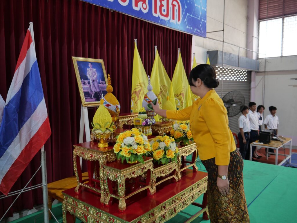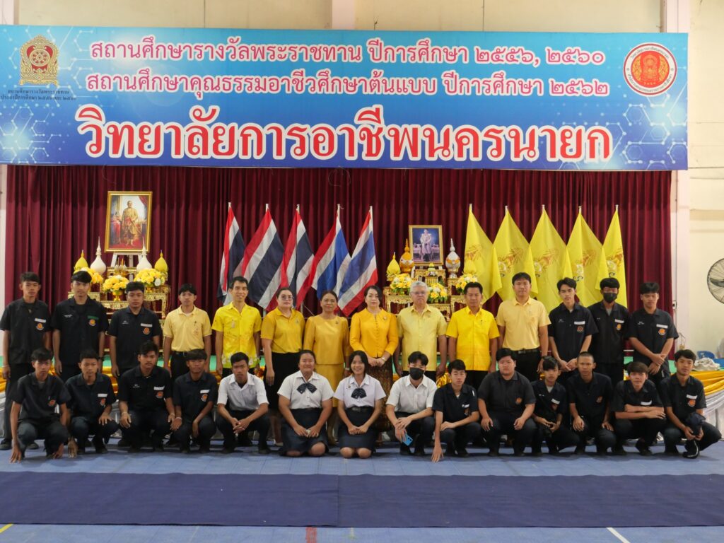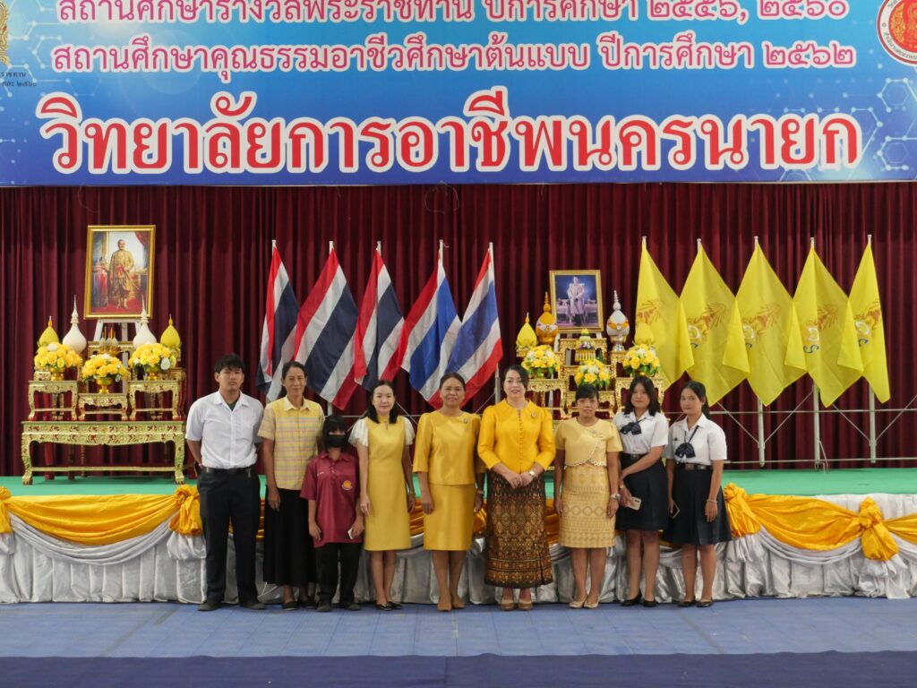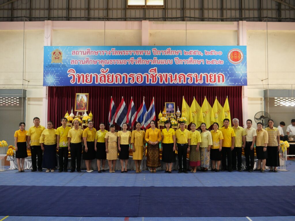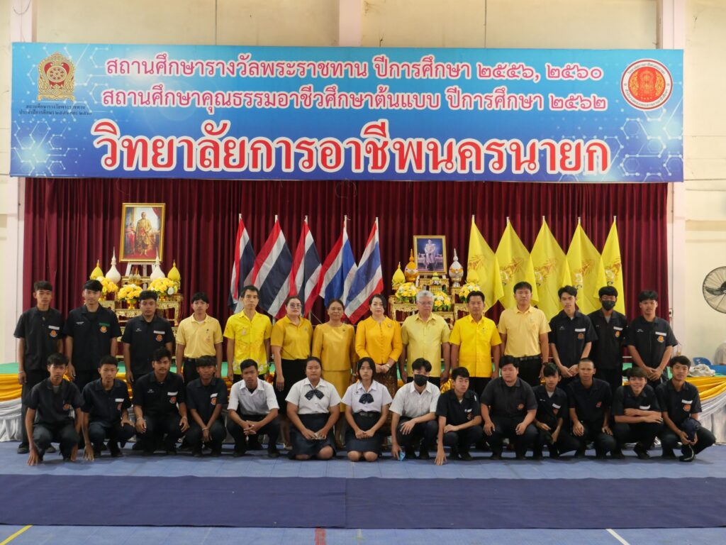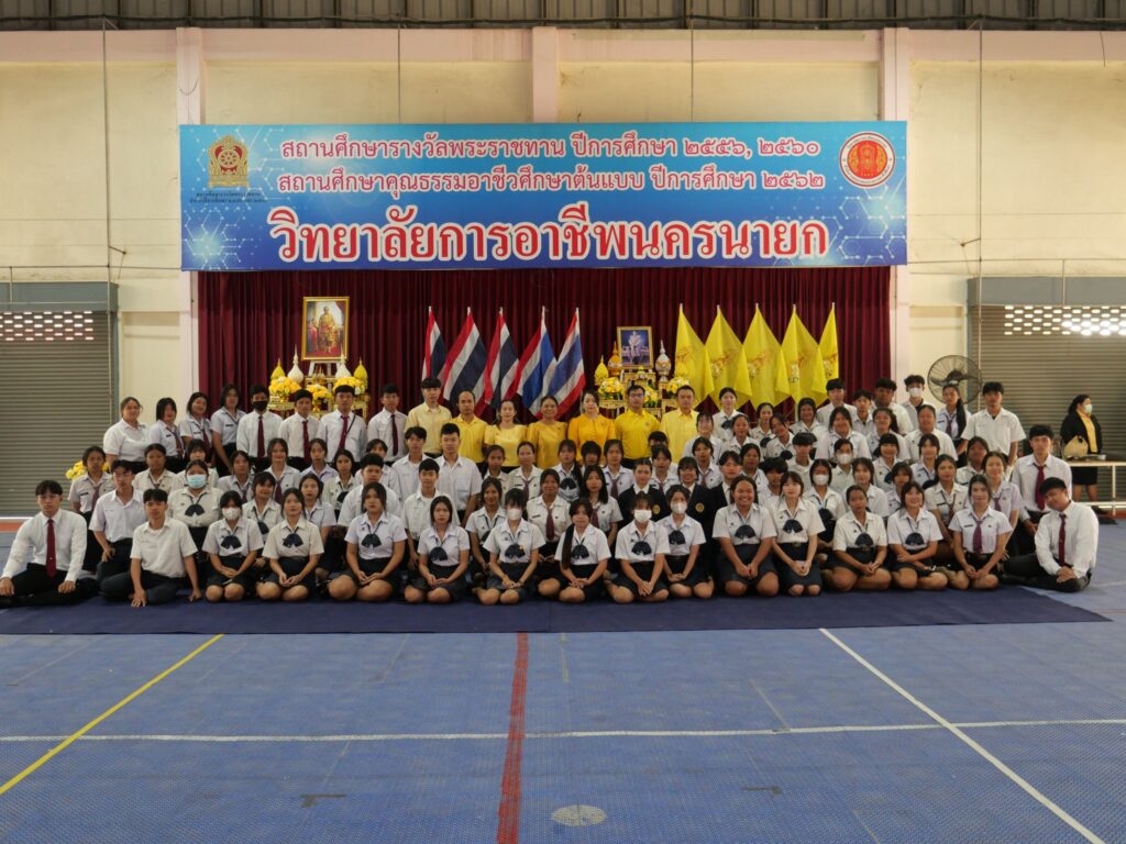 นางศรัญญา สุขปลั่ง ผู้อำนวยการวิทยาลัยการอาชีพนครนายก พร้อมด้วย ผู้บริหาร คณะครู บุคลากรทางการศึกษา และนักเรยีน นักศึกษา วิทยาลัยการิอาชีพนครนายก เข้าร่วมกิจกรรมเฉลิมพระเกียรติพระบาทสมเด็จพระเจ้าอยู่หัว เนื่องในโอกาสพระราชพิธีสมมงคลพระชนมายุเท่าพระบาทสมเด็จพระพุทธยอดฟ้าจุฬาโลกมหาราช สมเด็จพระปฐมบรมกษัตริยาธิราชแห่งพระราชวงศ์จักรี พุทธศักราช 2568 ณ อาคารกีฬาอเนกประสงค์ วิทยาลัยการอาชีพนครนายก