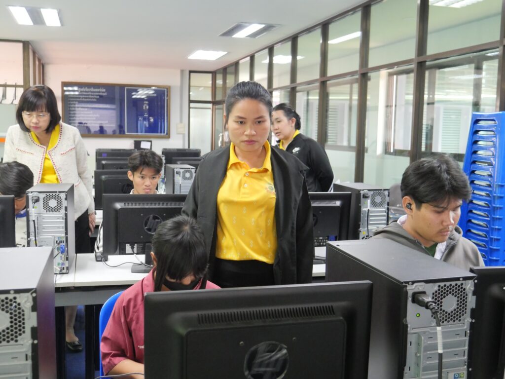 นางศรัญญา สุขปลั่ง ผู้อำนวยการวิทยาลัยการอาชีพนครนายก พร้อมด้วย นางสาวปานรดา มุ่งยุทธกลาง รองผู้อำนวยการฝ่ายวิชาการ นางภัคจิรา จิตรมิตร หัวหน้าแผนกวิชาสามัญสัมพันธ์ คณะครูแผนกวิชาสามัญสัมพันธ์ และนักเรียน นักศึกษา เข้าร่วมการทดลองเข้าใช้งาน ระบบโดยโปรแกรมประเมินสมรรถนะนักเรียนมาตรฐานสากล (Programme for international student Assessment หรือ PISA) สำหรับนักเรียนระดับประกาศนียบัตรวิชาชีพชั้นปีที่ 1 (ปวช.1) ณ ห้องศูนย์ข้อมูล อาคารอำนวยการ ชั้น 2 วิทยาลัยการอาชีพนครนายก