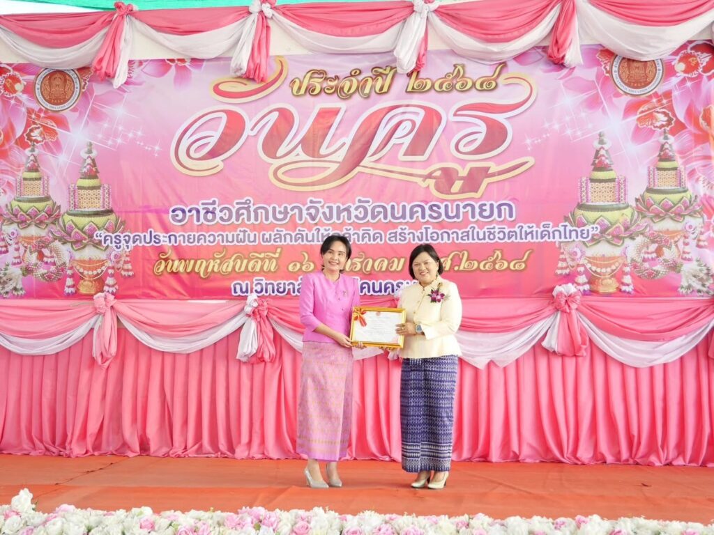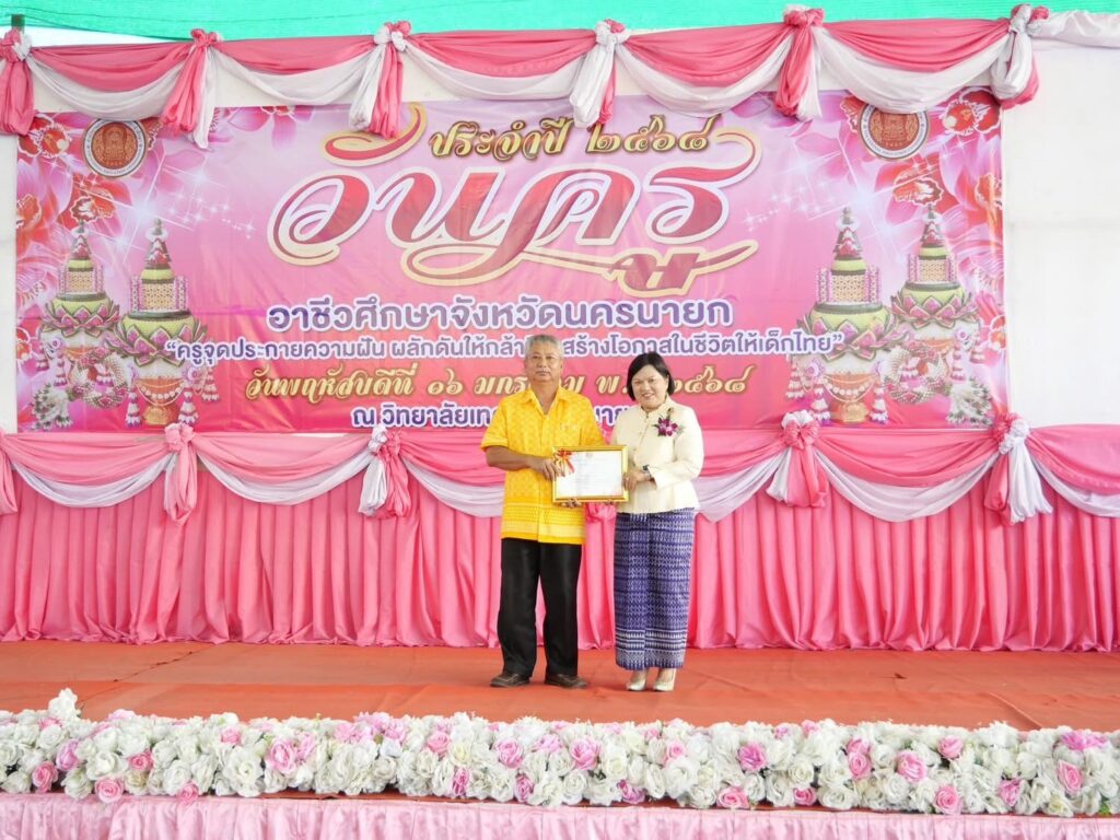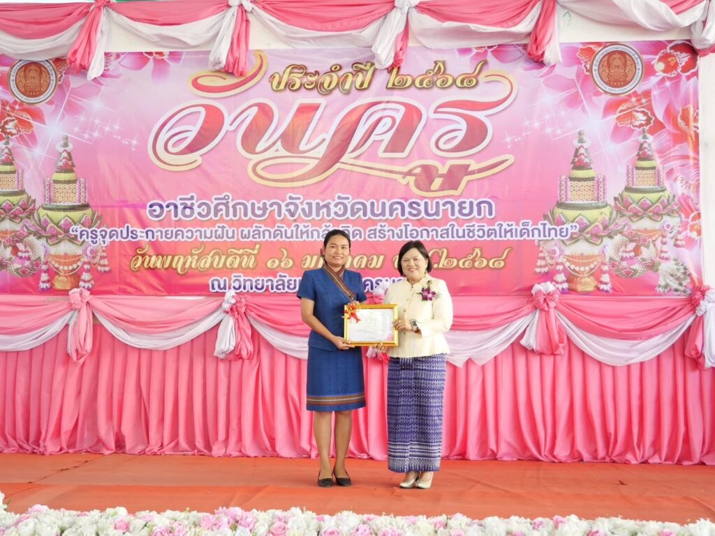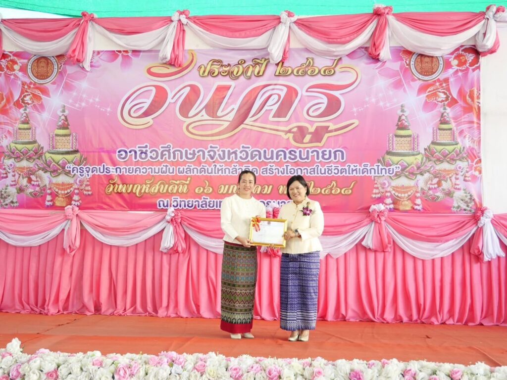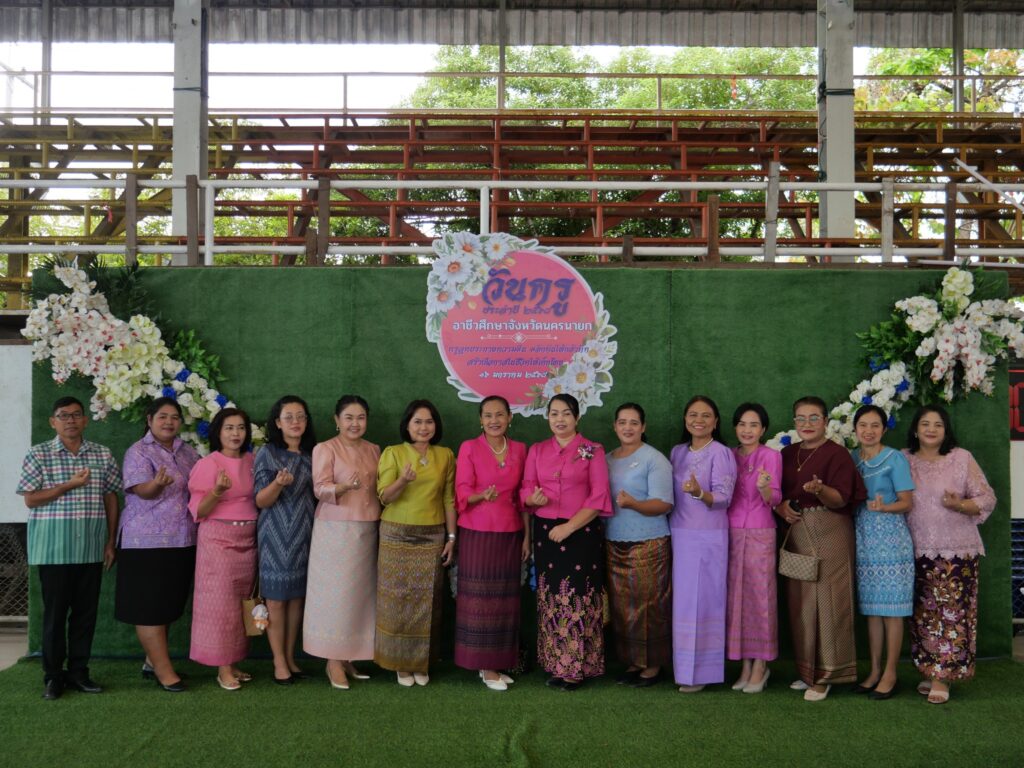 นางศรัญญา สุขปลั่ง ผู้อำนวยการวิทยาลัยการอาชีพนครนายก พร้อมด้วย ผู้บริหาร คณะครู บุคลากรทางการศึกษา วิทยาลัยการอาชีพนครนายก ร่วมกิจกรรม เนื่องใน “วันครู” ประจำปี 2568 ณ วิทยาลัยเทคนิคนครนายก