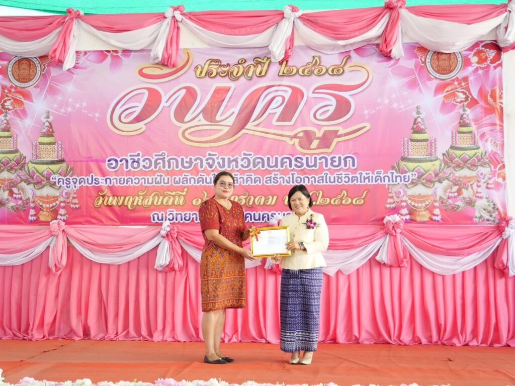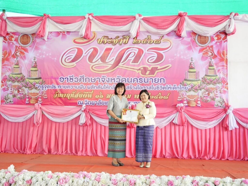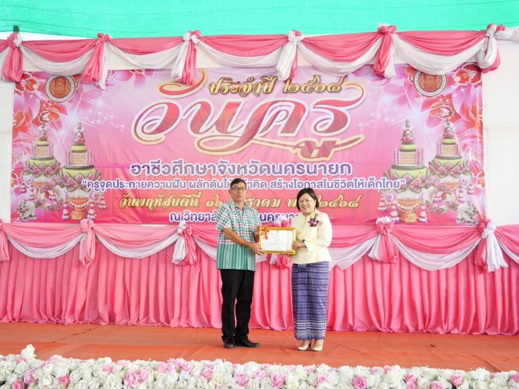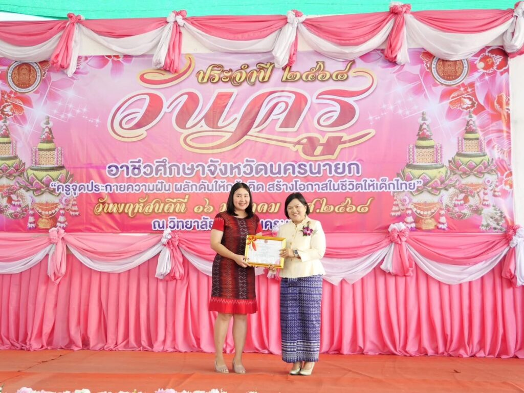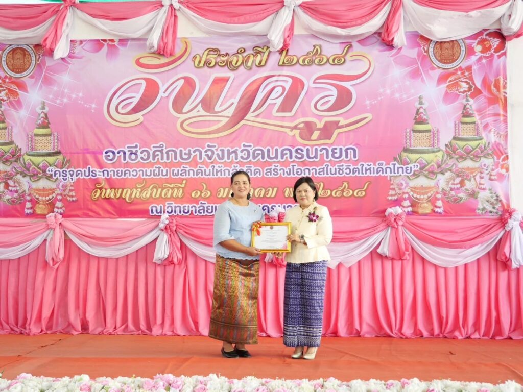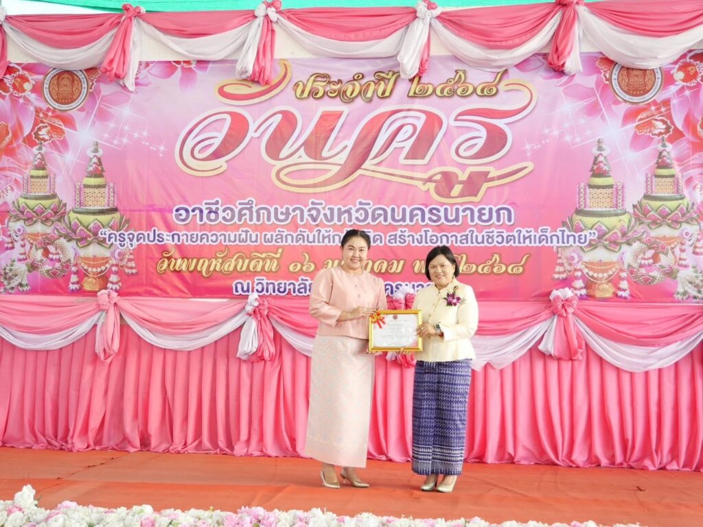 นางศรัญญา สุขปลั่ง ผู้อำนวยการวิทยาลัยการอาชีพนครนายก พร้อมด้วย ผู้บริหาร คณะครู บุคลากรทางการศึกษา วิทยาลัยการอาชีพนครนายก ร่วมกิจกรรม เนื่องใน “วันครู” ประจำปี 2568 ณ วิทยาลัยเทคนิคนครนายก