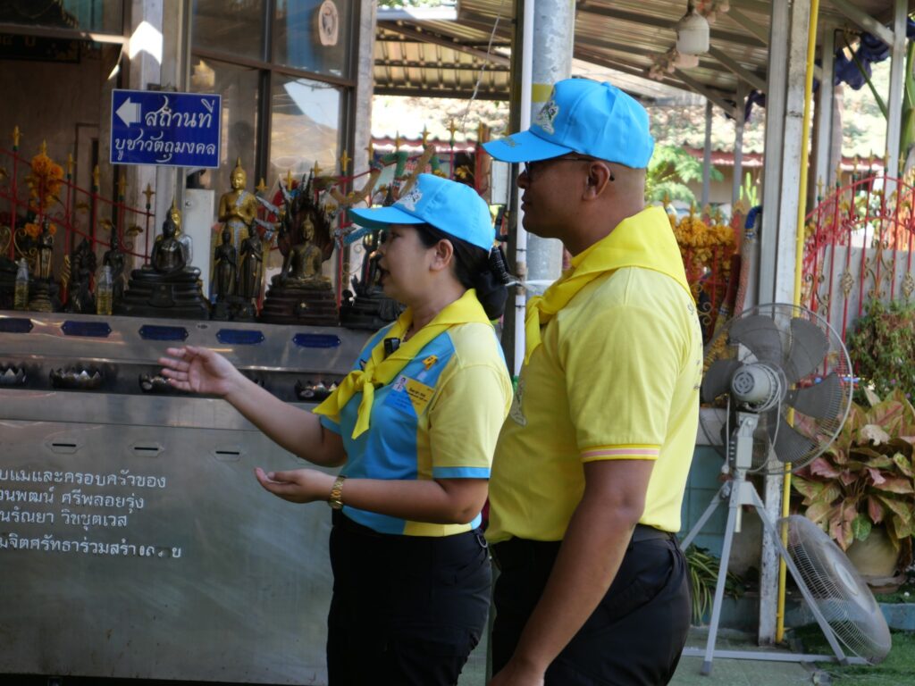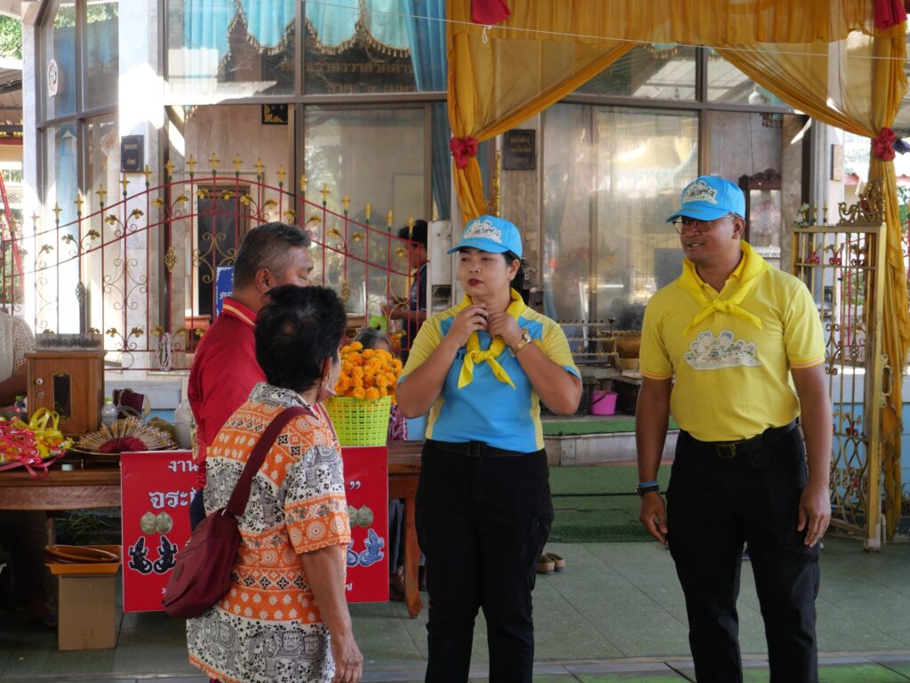 นางศรัญญา สุขปลั่ง ผู้อำนวยการวิทยาลัยการอาชีพนครนายก พร้อมด้วย นายธันยวัฒน์ เชิญแก้ว หัวหน้างานประชาสัมพันธ์ วิทยาลัยการอาชีพนครนายก เข้าร่วม Live โรงเรียนจิตอาสาพระราชทาน จิตอาสาสายมูพาชมวัด วัดลำบัวลอย ณ วัดลำบัวลอย ตำบลท่าเรือ อำเภอปากพลี จังหวัดนครนายก