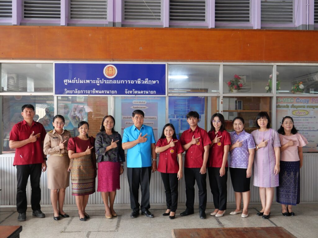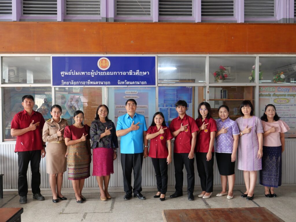 นางศรัญญา สุขปลั่ง ผู้อำนวยการวิทยาลัยการอาชีพนครนายก พร้อมด้วย คณะผู้บริหาร คณะครู บุคลากรทางการศึกษา วิทยาลัยการอาชีพนครนายก ต้อนรับคณะศึกษาดูงานศูนย์บ่มเพาะผู้ประกอบการอาชีวศึกษา จากวิทยาลัยการอาชีพประโคนชัย จังหวัดบุรีรัมย์ โดยมีหัวหน้างานศูนย์บ่ม นางสาวศรุดา มณีวงศ์ ให้การต้อนรับและแนะนำการดำเนินงานภายใต้ศูนย์บ่มเพาะผู้ประกอบการอาชีวศึกษา วิทยาลัยการอาชีพนครนายก ทั้งนี้เพื่อเป็นการแลกเปลี่ยนเรียนรู้ร่วมกันถึงแนวทางในการประสานความร่วมมือเพื่อยกระดับการดำเนินงานและการเตรียมความพร้อมด้านการประกอบธุรกิจให้กับผู้เรียนอาชีวศึกษา ณ ห้องงานศูนย์บ่มเพาะผู้ประกอบการอาชีวศึกษา วิทยาลัยการอาชีพนครนายก