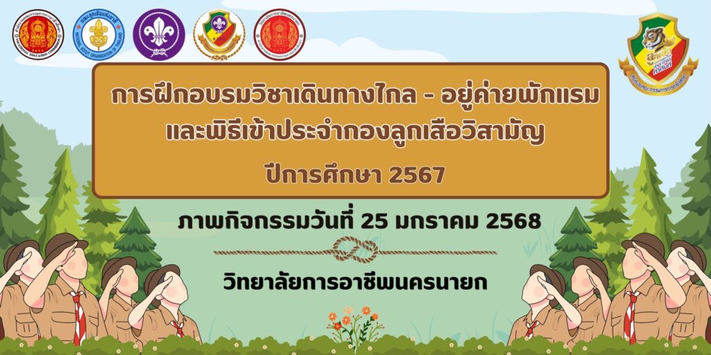 นางศรัญญา สุขปลั่ง ผู้อำนวยการวิทยาลัยการอาชีพนครนายก พร้อมด้วย ผู้บริหาร ผู้กำกับลูกเสือวิสามัญ คณะครู บุคลากรทางการศึกษา และลูกเสือวิสามัญ เข้าร่วมการฝึกอบรมวิชาเดินทางไกล – อยู่ค่ายพักแรมและพิธีเข้าประจำกองลูกเสือวิสามัญ ปีการศึกษา 2567 ในระหว่างวันที่ 25 – 27 มกราคม 2568 ณ ค่ายลูกเสือ ไร่หุบพญาแคมป์ ตำบลเขาเพิ่ม อำเภอบ้านนา จังหวัดนครนายก