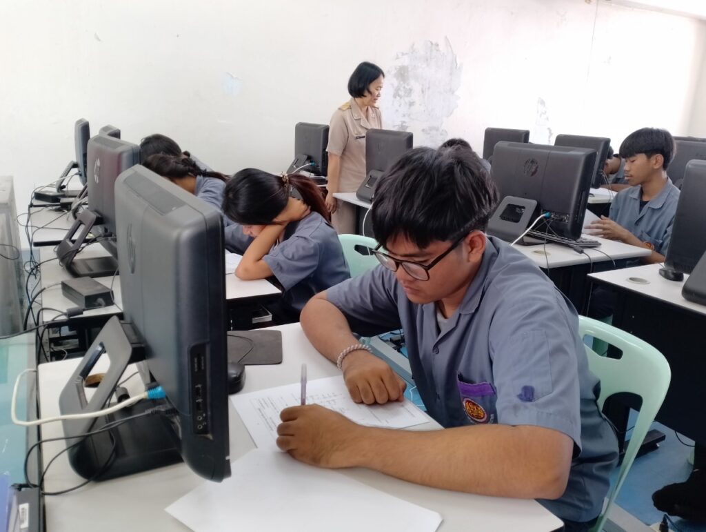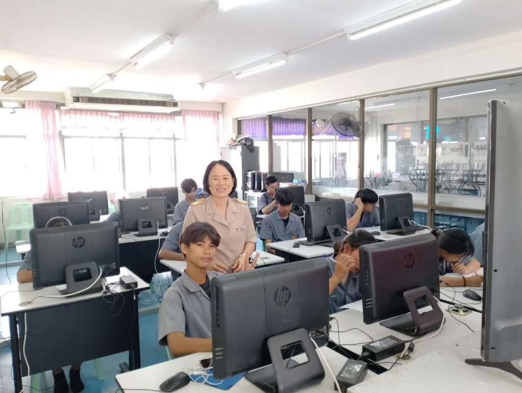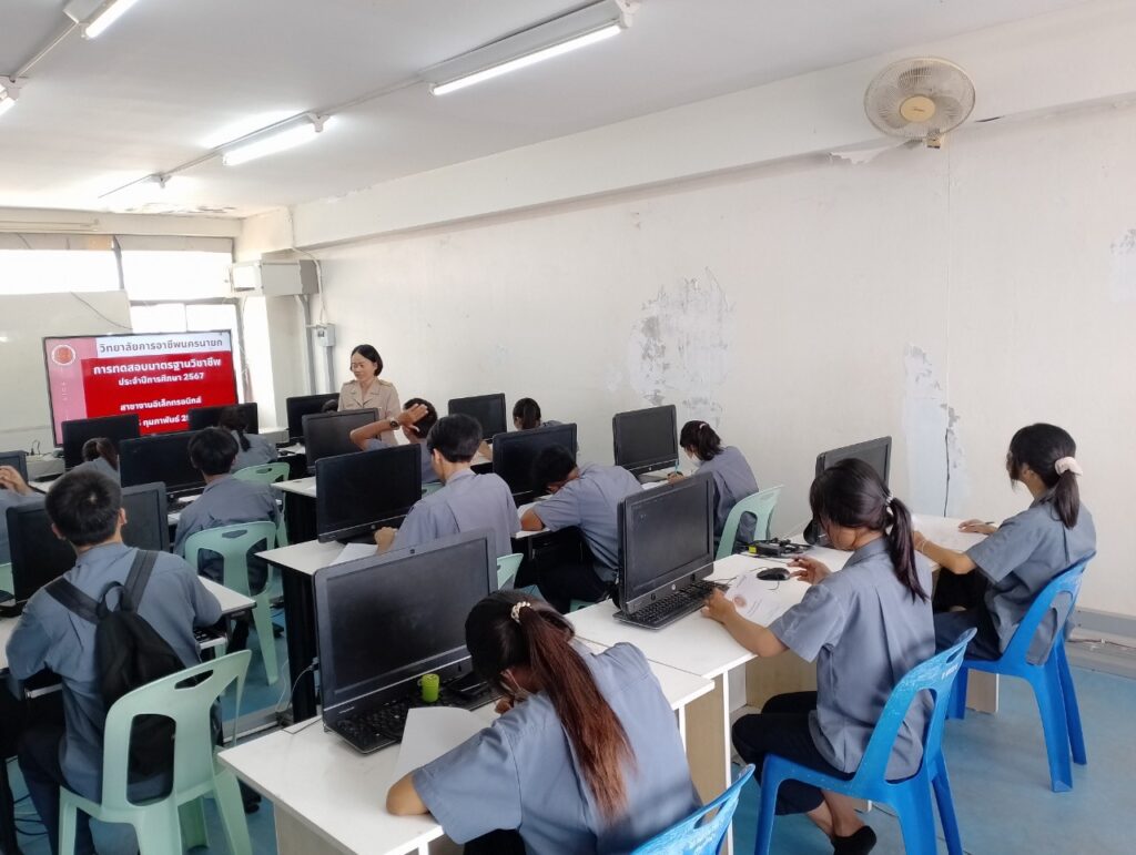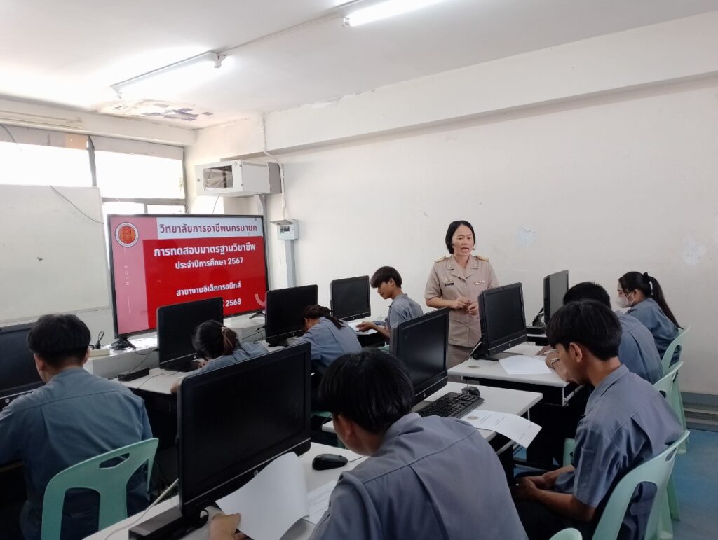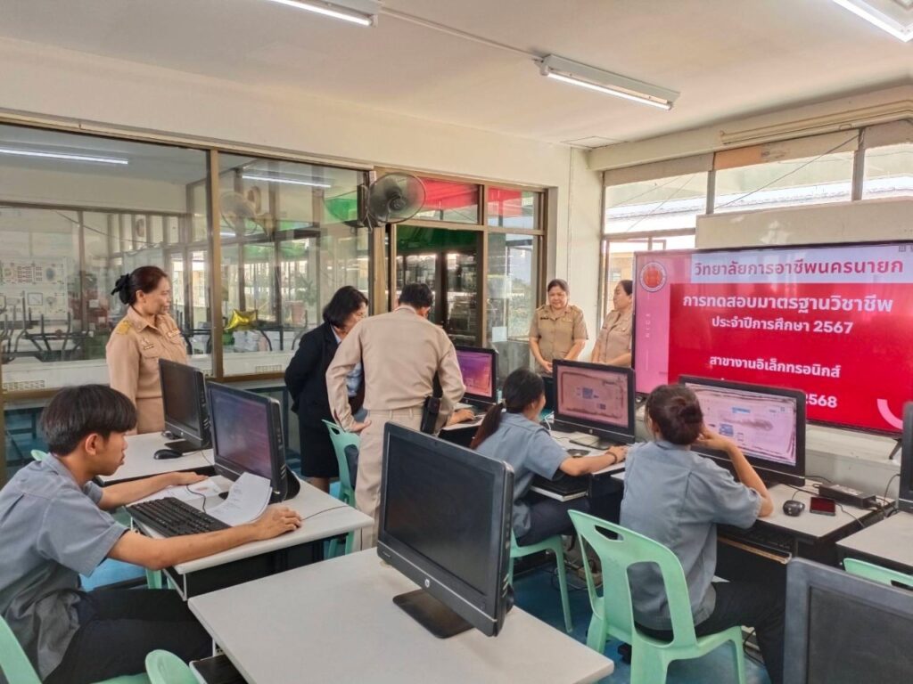 วันที่ 3 กุมภาพันธ์ 2568 นางศรัญญา สุขปลั่ง พร้อมด้วย นางสาวปานรดา มุ่งยุทธกลาง รองผู้อำนวยการฝ่ายวิชาการ คณะครูแผนกวิชาช่างอิเล็กทรอนิกส์ และคณะครูแผนกวิชาช่างกลโรงงาน ร่วมดำเนินการทดสอบมาตรฐานวิชาชีพ ประจำปีการศึกษา 2567 นักเรียน ระดับประกาศนียบัตรวิชาชีพ (ปวช.3) แผนกวิชาช่างอิเล็กทรอนิกส์ และแผนกวิชาช่างกลโรงงาน ณ ห้องทดสอบ วิทยาลัยการอาชีพนครนายก