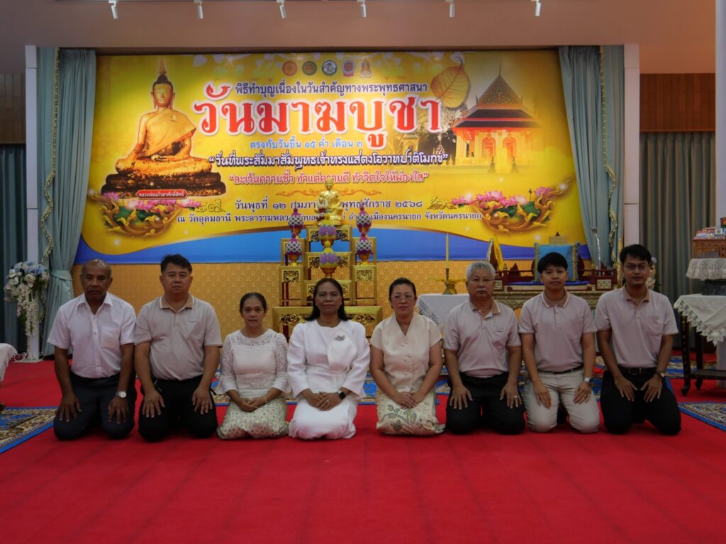 วันที่ 12 กุมภาพันธ์ 2568 นางสาวปานรดา มุ่งยุทธกลาง รองผู้อำนวยการฝ่ายบริหารทรัพยากร วิทยาลัยการอาชีพนครนายก พร้อมด้วย นายอำนาจ พรมขันธ์ หัวหน้าแผนกวิชาช่างไฟฟ้ากำลัง คณะครู แผนกวิชาช่างไฟฟ้ากำลัง และบุคลากรทางการศึกษา วิทยาลัยการอาชีพนครนายก เข้าร่วมกิจกรรมส่งเสริมการเผยแพร่พระพุทธศาสนา ตามมติมหาเถรสมาคม เนื่องในเทศกลาสำคัญทางพระพุทธศาสนา (วันมาฆบูชา) ประจำปี พ.ศ. 2568 และกิจกรรมผู้ว่าฯ พาแต่งผ้าไทย หิ้วปิ่นโตเข้าวัด ศรัทธาอิ่มบุญ เกื้อหนุนพระพุทธศาสนารักษาสิ่งแวดล้อม จังหวัดนครนายก ประจำปีงบประมาณ 2568 ครั้งที่ 8 ณ วัดอุดมธานี พระอารามหลวง ตำบลบ้านใหญ่ อำเภอเมืองนครนายก จังหวัดนครนายก