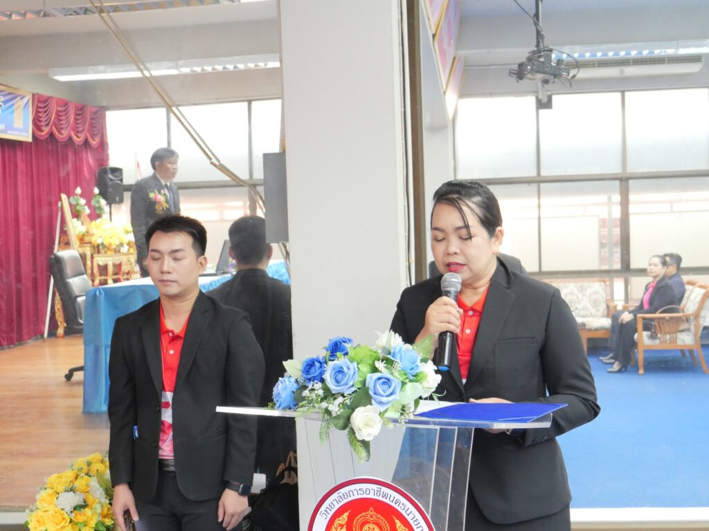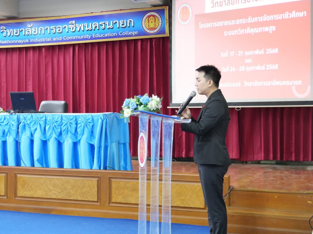 วันที่ 18 กุมภาพันธ์ 2568 นางศรัญญา สุขปลั่ง ผู้อำนวยการวิทยาลัยการอาชีพนครนายก พร้อมด้วย นางรติภัทร จันทร์ส่อง รองผู้อำนวยการฝ่ายพัฒนากิจการนักเรียน นักศึกษา นางพัชรินทร์ วิลัยโรจน์ หัวหน้างานอาชีวศึกษาระบบทวิภาคี คณะครู บุคลากรทางการศึกษา และนักเรียน นักศึกษา วิทยาลัยการอาชีพนครนายก เข้าร่วมพิธีเปิดโครงการขยายและยกระดับการจัดการอาชีวศึกษาระบบทวิภาคีคุณภาพสูง การอบรมเพิ่มสมรรถนะด้านบุคลิกภาพ โดยมีนายบุญลือ ทองเกตุแก้ว ผู้อำนวยการสถาบันการอาชีวศึกษาภาคกลาง 3 เป็นประธานในพิธีเปิดฯ และนายเชาว์ รักษ์นิ่ม ผู้อำนวยการสถานพินิจและคุ้มครองเด็กและเยาวชนจังหวัดนครนายก พร้อมเจ้าหน้าที่ เข้าร่วมในพิธีเปิดฯ ณ ห้องประชุมเฟรนคอนเนอร์ อาคารวิทยบริการ วิทยาลัยการอาชีพนครนายก