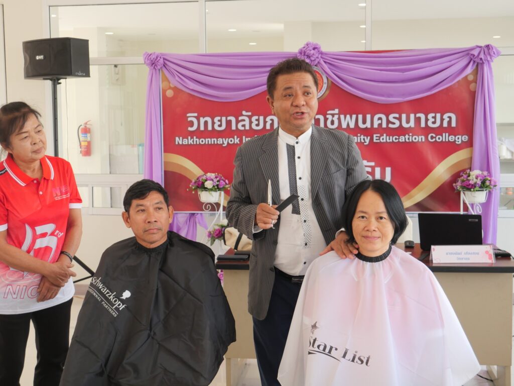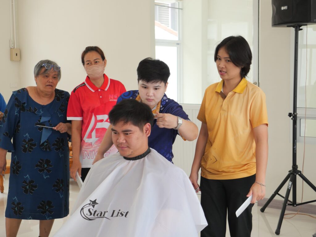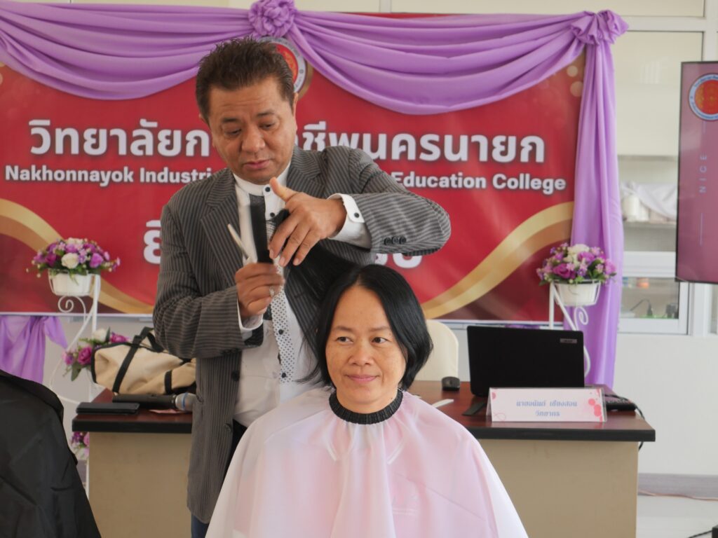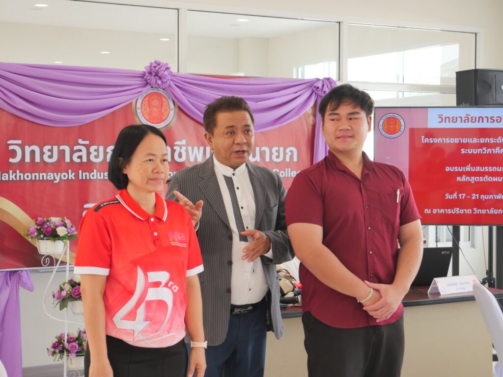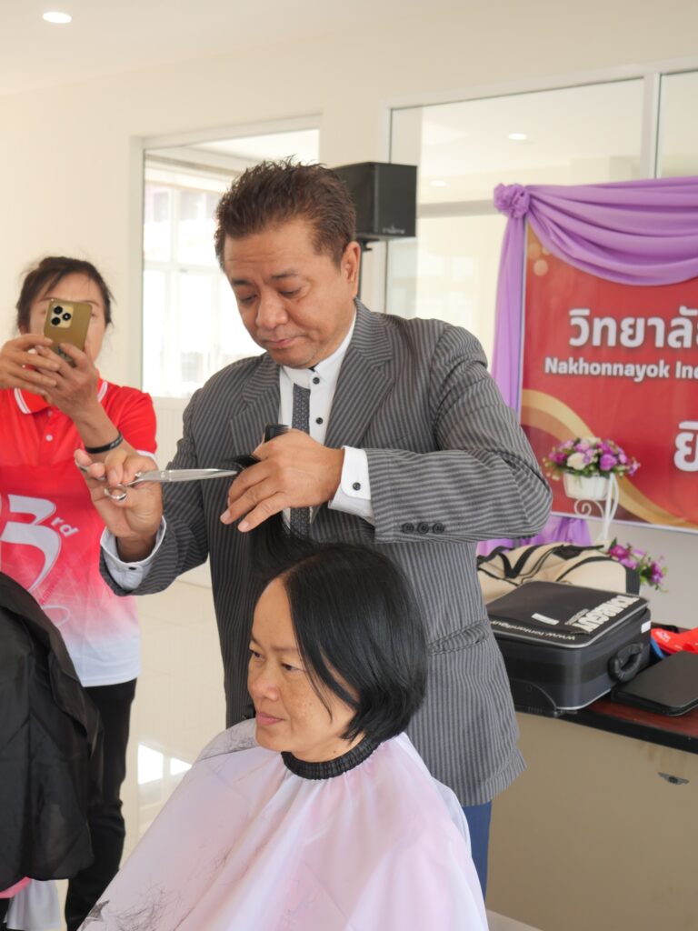 วันที่ 18 กุมภาพันธ์ 2568 นางศรัญญา สุขปลั่ง ผู้อำนวยการวิทยาลัยการอาชีพนครนายก พร้อมด้วย นางรติภัทร จันทร์ส่อง รองผู้อำนวยการฝ่ายพัฒนากิจการนักเรียน นักศึกษา นางพัชรินทร์ วิลัยโรจน์ หัวหน้างานอาชีวศึกษาระบบทวิภาคี คณะครู บุคลากรทางการศึกษา และนักเรียน นักศึกษา วิทยาลัยการอาชีพนครนายก เข้าร่วมโครงการขยายและยกระดับการจัดการอาชีวศึกษาระบบทวิภาคีคุณภาพสูง การอบรมเพิ่มสมรรถนะด้านบุคลิกภาพหลักสูตรตัดผมชายพื้นฐาน ในระหว่างวันที่ 17 – 21 กุมภาพันธ์ 2568 โดยในวันนี้ได้รับความอนุเคราะห์จากกองพันทหารราบ โรงเรียนนายร้อยพระจุลจอมเกล้า เป็นนายแบบในการตัดผมชายพื้นฐาน ณ วิทยาลัยการอาชีพนครนายก