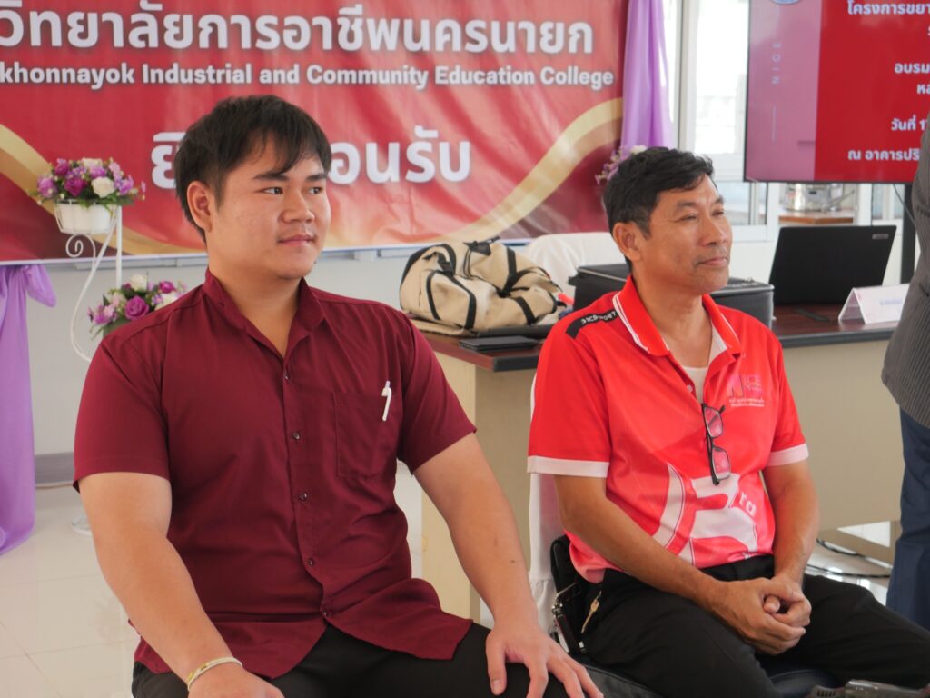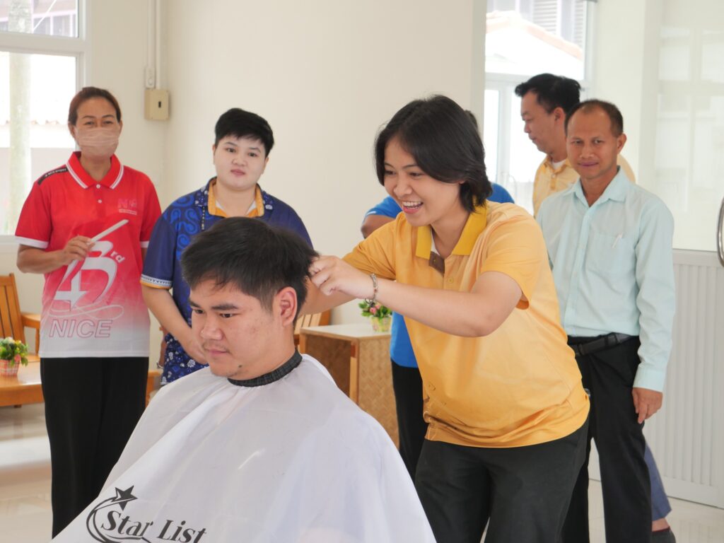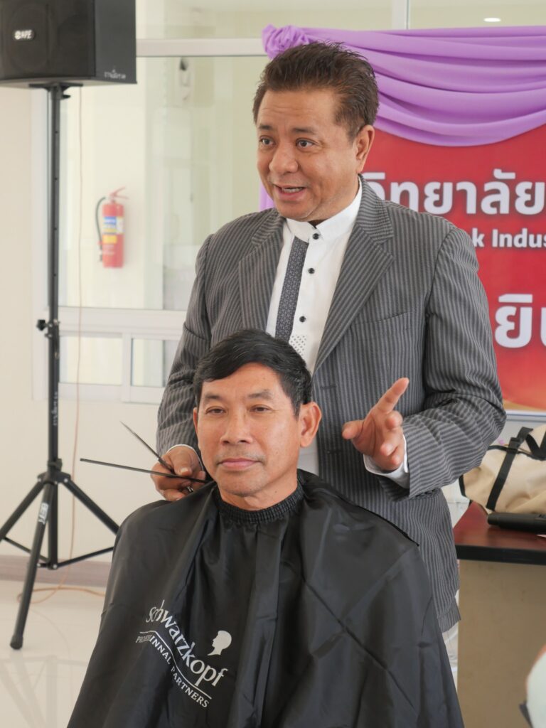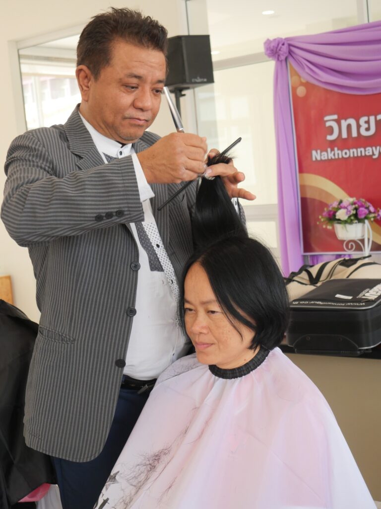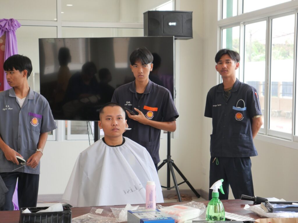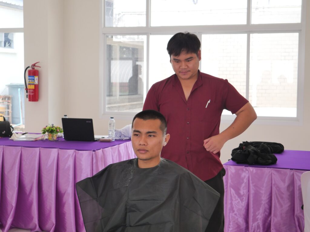 วันที่ 18 กุมภาพันธ์ 2568 นางศรัญญา สุขปลั่ง ผู้อำนวยการวิทยาลัยการอาชีพนครนายก พร้อมด้วย นางรติภัทร จันทร์ส่อง รองผู้อำนวยการฝ่ายพัฒนากิจการนักเรียน นักศึกษา นางพัชรินทร์ วิลัยโรจน์ หัวหน้างานอาชีวศึกษาระบบทวิภาคี คณะครู บุคลากรทางการศึกษา และนักเรียน นักศึกษา วิทยาลัยการอาชีพนครนายก เข้าร่วมโครงการขยายและยกระดับการจัดการอาชีวศึกษาระบบทวิภาคีคุณภาพสูง การอบรมเพิ่มสมรรถนะด้านบุคลิกภาพหลักสูตรตัดผมชายพื้นฐาน ในระหว่างวันที่ 17 – 21 กุมภาพันธ์ 2568 โดยในวันนี้ได้รับความอนุเคราะห์จากกองพันทหารราบ โรงเรียนนายร้อยพระจุลจอมเกล้า เป็นนายแบบในการตัดผมชายพื้นฐาน ณ วิทยาลัยการอาชีพนครนายก