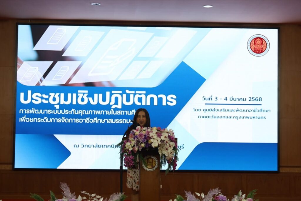 วันที่ 4 มีนาคม 2568 นางรติภัทร จันทร์ส่อง รองผู้อำนวยการฝ่ายแผนงานและความร่วมมือ พร้อมด้วย นายสิทธิศักดิ์ สงวนพิมพ์ หัวหน้างงานประกันคุณภาพและมาตรฐานการศึกษา และบุคลากรทางการศึกษา วิทยาลัยการอาชีพนครนายก เข้าร่วมโครงการการประชุมเชิงปฏิบัติการพัฒนาระบบประกันคุณภาพภายในสถานศึกษาเพื่อยกระดับการจัดการอาชีวศึกษาสมรรถนะสูง ในระหว่างวันที่ 3 – 4 มีนาคม 2568 โดยมีนางสาวดุษฎี น้อยใจบุญ ผู้อำนวยการศูนย์ส่งเสริมและพัฒนาอาชีวศึกษาภาคตะวันออกและกรุงเทพมหานคร เป็นประธานในพิธีเปิดฯ ณ ณ ห้องประชุมมรกต ชั้น 3 อาคารอำนวยการ วิทยาลัยเทคนิคปราจีนบุรี