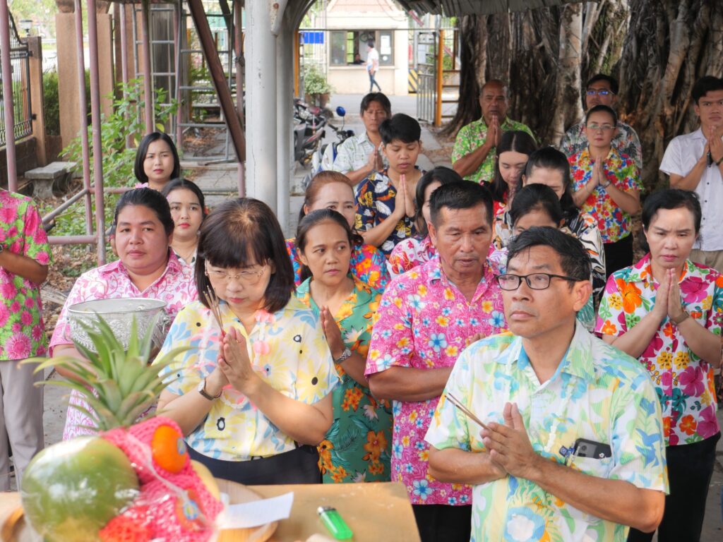 วันที่ 9 เมษายน 2568 นางศรัญญา สุขปลั่ง ผู้อำนวยการ วิทยาลัยการอาชีพนครนายก พร้อมด้วย ผู้บริหาร คณะครู และบุคลากรทางการศึกษา วิทยาลัยการอาชีพนครนายก ร่วมพิธีไหว้สิ่งศักดิ์สิทธิ์ประจำวิทยาลัยฯ เนื่องในโอกาส สืบสานประเพณีไทย (วันสงกรานต์) ประจำปี 2568 ณ วิทยาลัยการอาชีพนครนายก