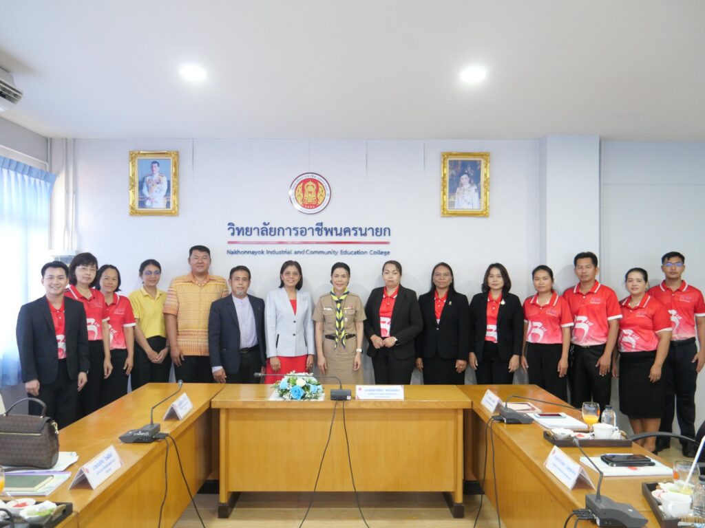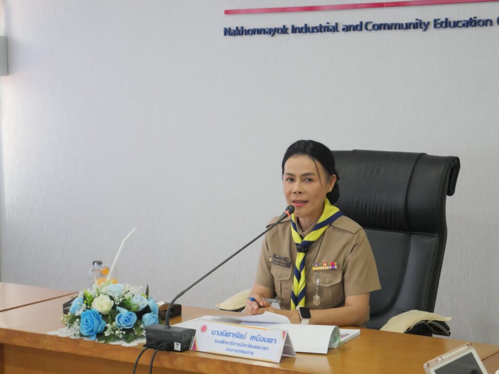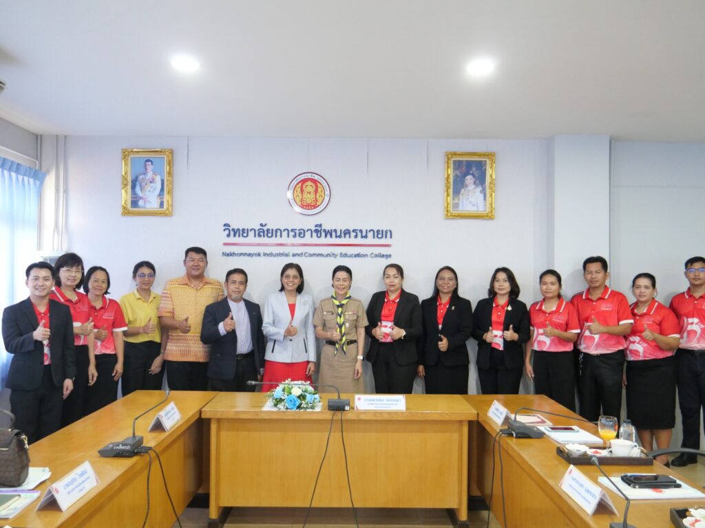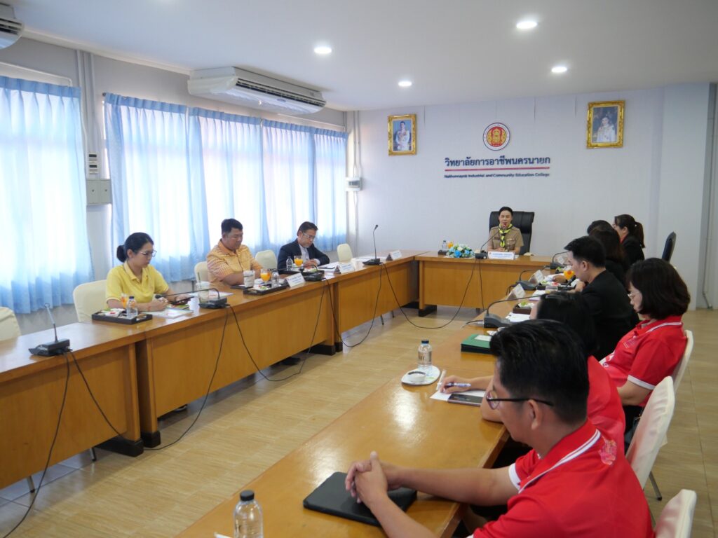 วันที่ 28 พฤษภาคม 2568 นางศรัญญา สุขปลั่ง ผู้อำนวยการวิทยาลัยการอาชีพนครนายก พร้อมด้วย ผู้บริหาร คณะครู และบุคลากรทางการศึกษา วิทยาลัยการอาชีพนครนายก ร่วมต้อนรับคณะกรรมการนิเทศติดตามการขับเคลื่อนการพัฒนาการศึกษา จังหวัดนครนายก ระยะ 5 ปี (พ.ศ. 2566 – พ.ศ. 2570) ประจำปีงบประมาณ พ.ศ. 2568 และนำเสนอการขับเคลื่อนการพัฒนาการศึกษา จังหวัดนครนายก ระยะ 5 ปี (พ.ศ. 2566 – พ.ศ. 2570) ประจำปีงบประมาณ พ.ศ. 2568 ณ ห้องประชุมจันทร์กระจ่างฟ้า อาคารอำนวยการ วิทยาลัยการอาชีพนครนายก