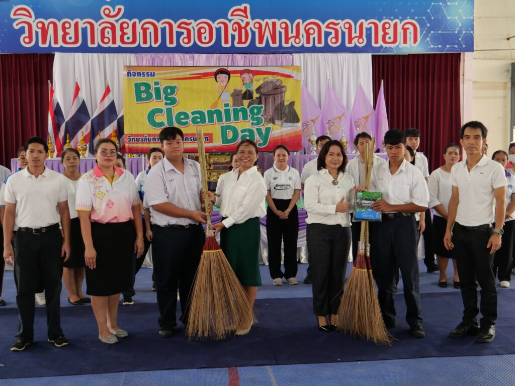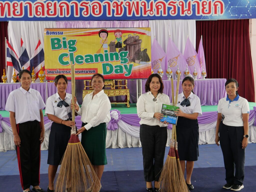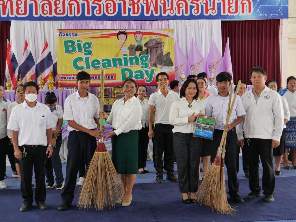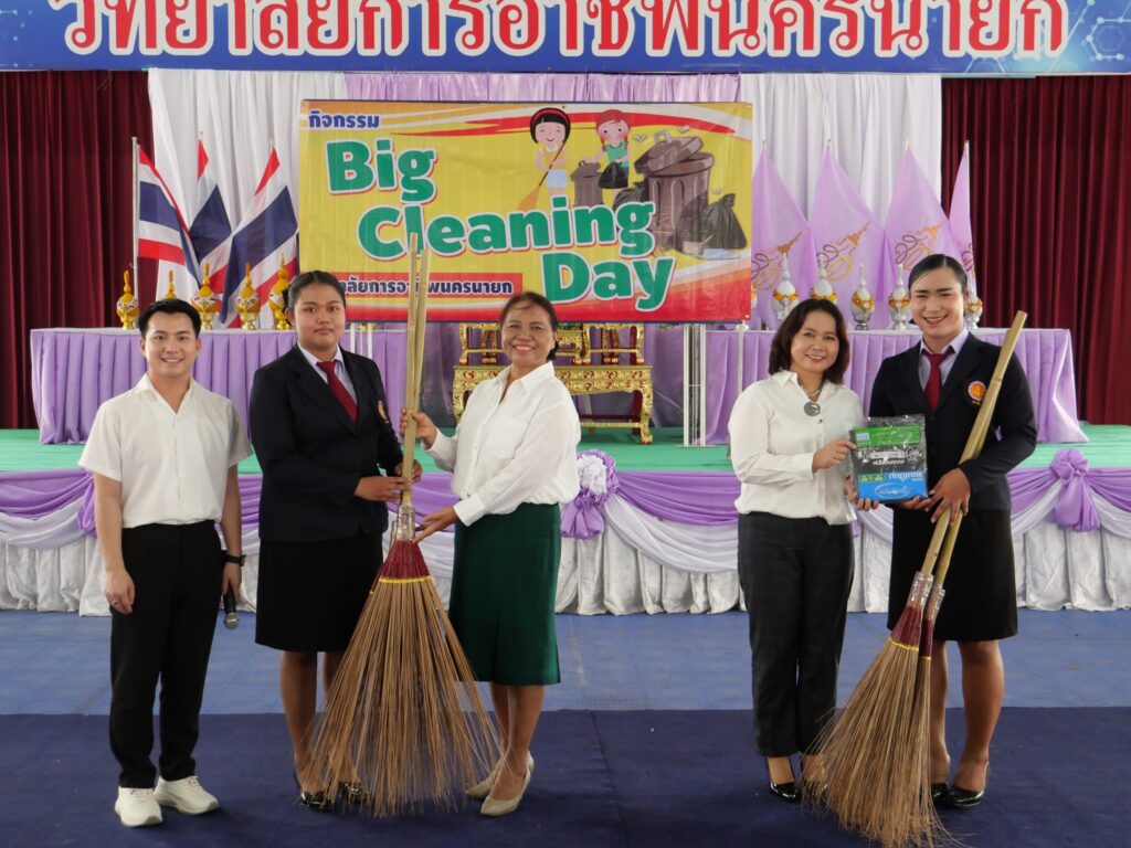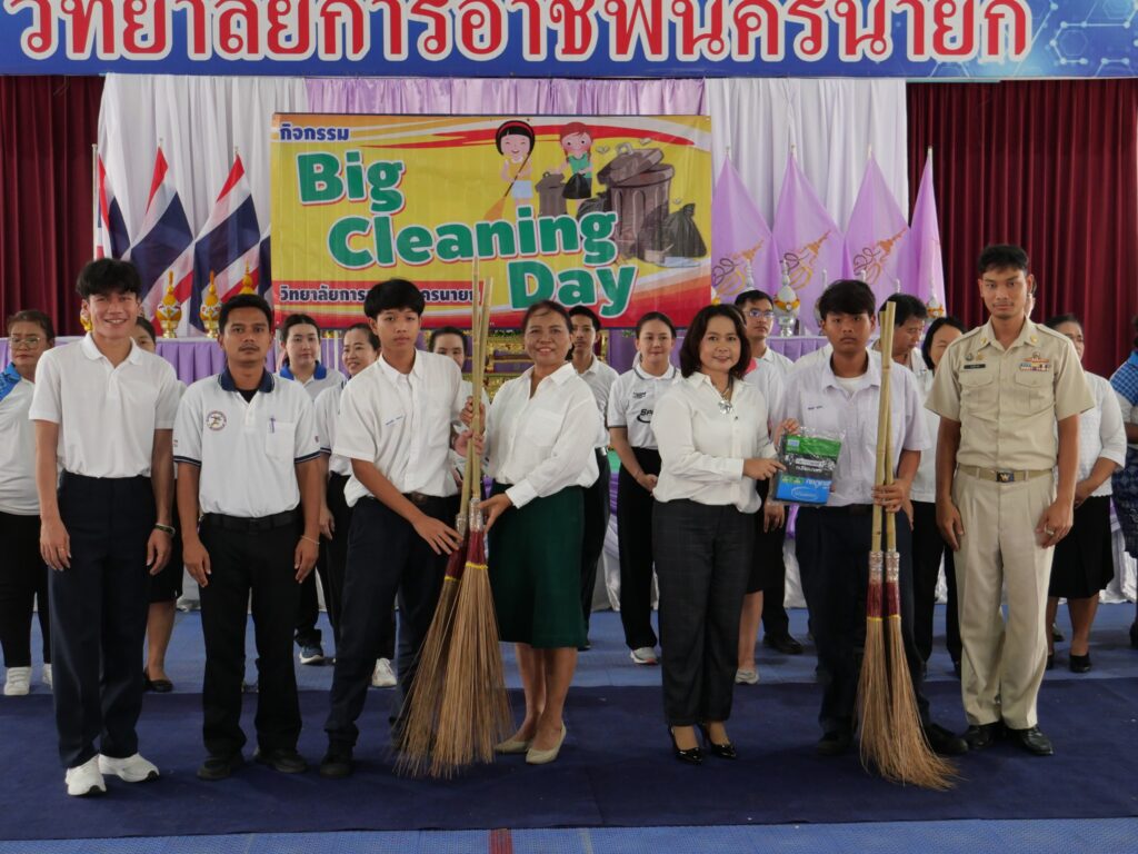 วันที่ 30 พฤษภาคม 2568 นางสาวปานรดา มุ่งยุทธกลาง รองผู้อำนวยการฝ่ายวิชาการ พร้อมด้วยนางรติภัทร จันทร์ส่อง รองผู้อำนวยการฝ่ายพัฒนากิจการนักเรียน นักศึกษา คณะครู บุคลากรทางการศึกษา และนักเรียน นักศึกษา วิทยาลัยการอาชีพนครนายก เข้าร่วมกิจกรรม Big cleaning Day (จิตอาสาพัฒนาวิทยาลัยฯ) เนื่องในโอกาสวันเฉลิมพระชนมพรรษา สมเด็จพระนางเจ้าสุทิดาพัชรสุธาพิมลลักษณ์ พระบรมราชินี ประจำปี 2568 ณ อาคารกีฬาอเนกประสงค์ วิทยาลัยการอาชีพนครนายก
