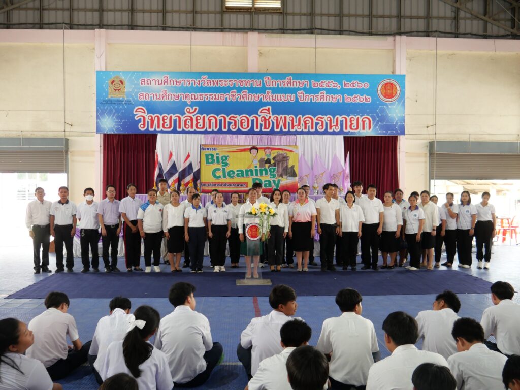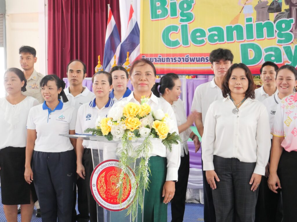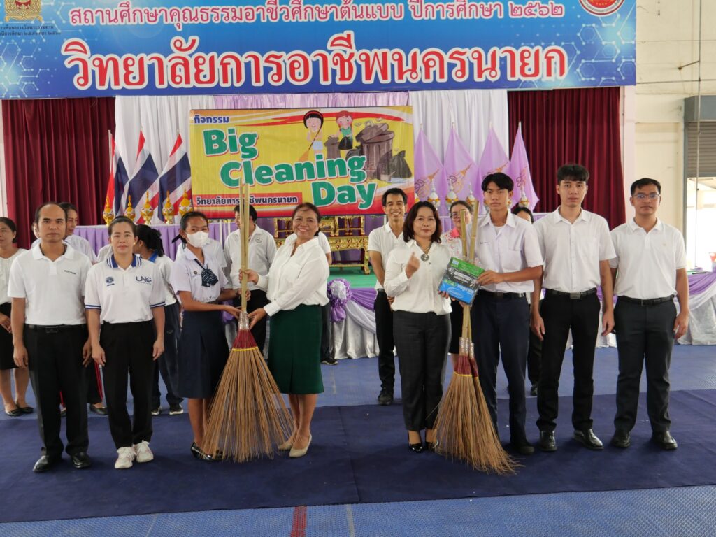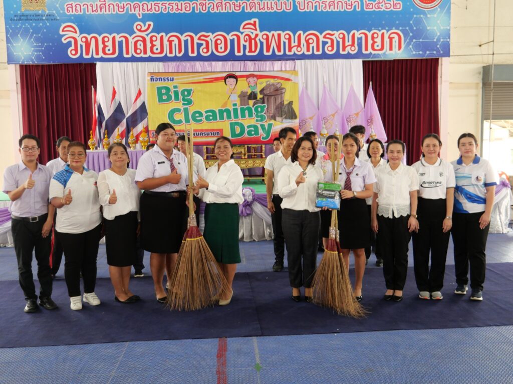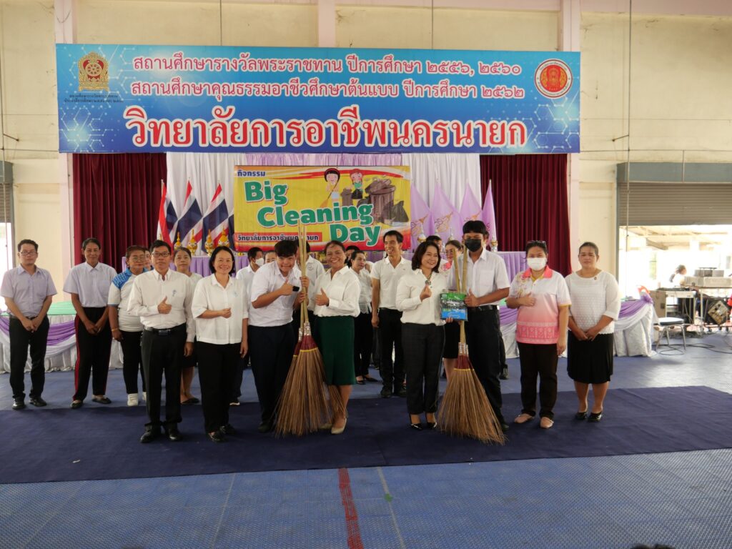 วันที่ 30 พฤษภาคม 2568 นางสาวปานรดา มุ่งยุทธกลาง รองผู้อำนวยการฝ่ายวิชาการ พร้อมด้วยนางรติภัทร จันทร์ส่อง รองผู้อำนวยการฝ่ายพัฒนากิจการนักเรียน นักศึกษา คณะครู บุคลากรทางการศึกษา และนักเรียน นักศึกษา วิทยาลัยการอาชีพนครนายก เข้าร่วมกิจกรรม Big cleaning Day (จิตอาสาพัฒนาวิทยาลัยฯ) เนื่องในโอกาสวันเฉลิมพระชนมพรรษา สมเด็จพระนางเจ้าสุทิดาพัชรสุธาพิมลลักษณ์ พระบรมราชินี ประจำปี 2568 ณ อาคารกีฬาอเนกประสงค์ วิทยาลัยการอาชีพนครนายก