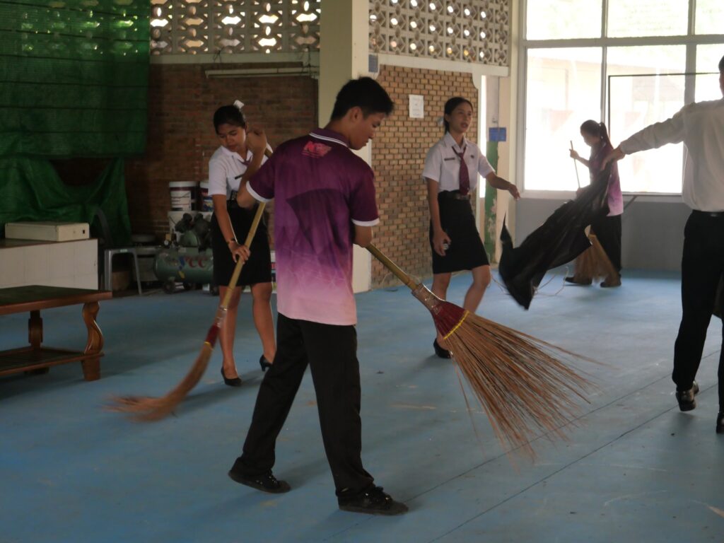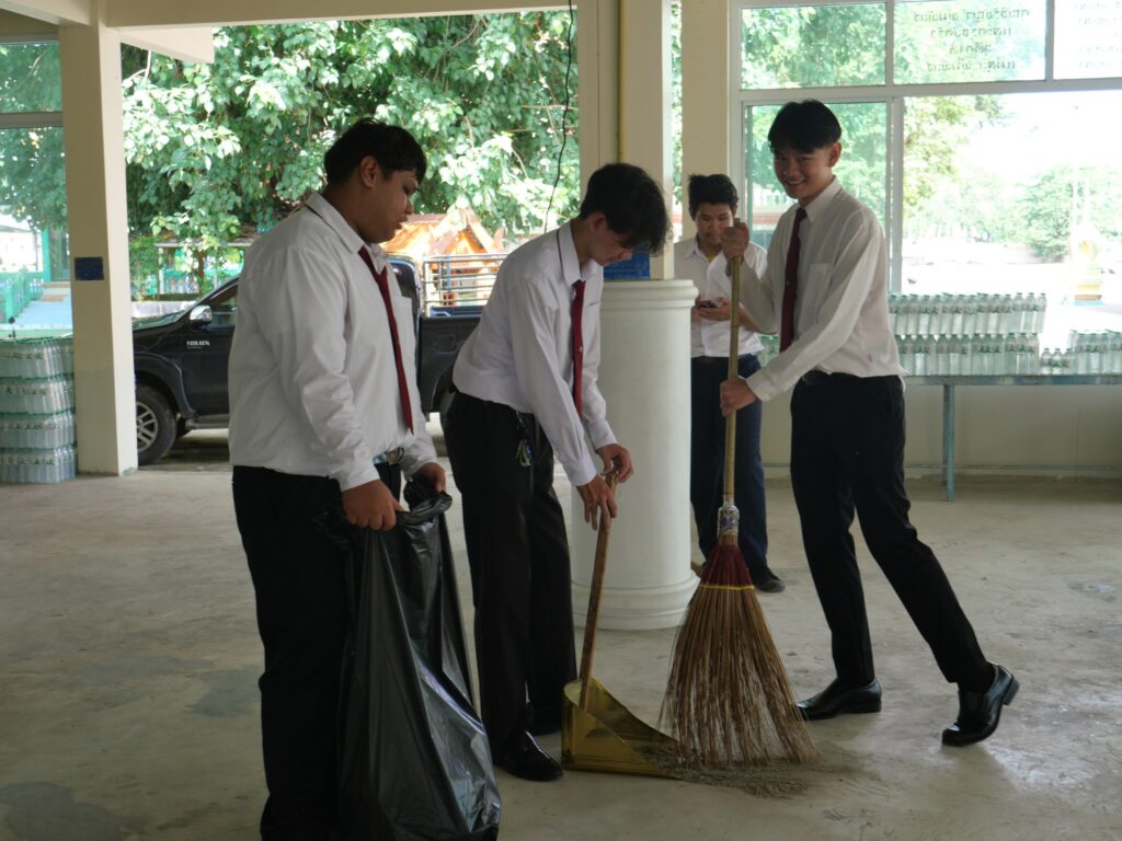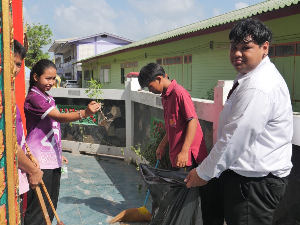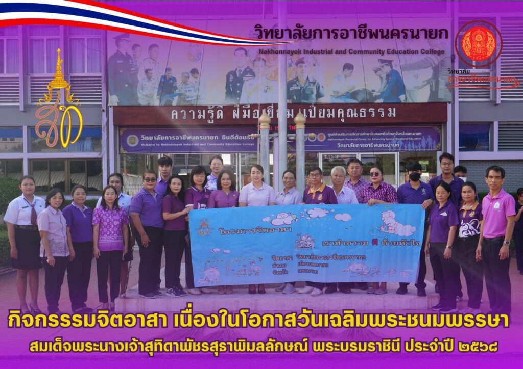 วันที่ 4 มิถุนายน 2568 นางศรัญญา สุขปลั่ง ผู้อำนวยการวิทยาลัยการอาชีพนครนายก พร้อมด้วย นางสาวฐิติมา ไชยอาลา หัวหน้างานกิจกรรมนักเรียน นักศึกษา นายธันยวัฒน์ เชิญแก้ว ครูที่ปรึกษา คณะครู และนักเรียนนักศึกษา วิทยาลัยการอาชีพนครนายก เข้าร่วมกิจกรรมจิตอาสา เนื่องในโอกาสวันเฉลิมพระชนมพรรษา สมเด็จพระนางเจ้าสุทิดา พัชรสุธาพิมลลักษณ พระบรมราชินี ประจำปี 2568 ณ วัดสันตยาราม ตำบลพรหมณี อำเภอเมืองนครนายก จังหวัดนครนายก