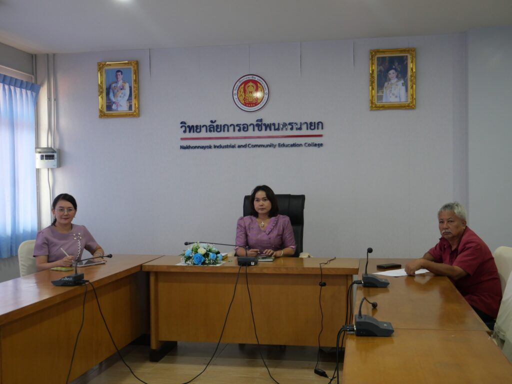 วันที่ 6 มิถุนายน 2568 นางรติภัทร จันทร์ส่อง รองผู้อำนวยการฝ่ายพัฒนากิจการนักเรียน นักศึกษา พร้อมด้วย นางสาวปานรดา มุ่งยุทธกลาง รองผู้อำนวยการฝ่ายวิชาการ นายณรงค์ ไพรดำ หัวหน้างงานแผนงานและงบประมาณ คณะครู และบุคลากรทางการศึกษา เข้าร่วมการประชุมชี้แจงการดำเนินงานจัดทำแผนการขับเคลื่อนทักษะสีเขียวในสถานศึกษา พ.ศ. 2568 – 2570 ผ่านระบบประชุมทางไกล (Video Conference) ณ ห้องประชุมจันทร์กระจ่างฟ้า อาคารอำนวยการ วิทยาลัยการอาชีพนครนายก