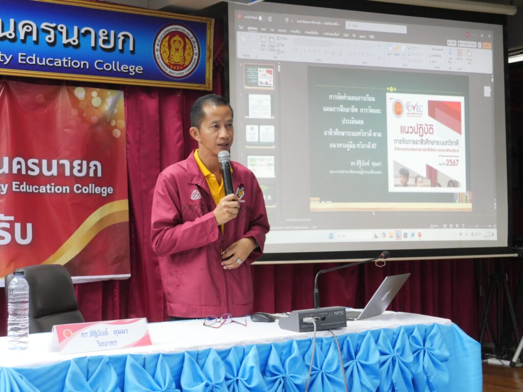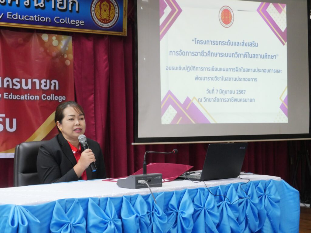 วันที่ 7 มิถุนายน 2568 นางศรัญญา สุขปลั่ง ผู้อำนวยการวิทยาลัยการอาชีพนครนายก พร้อมด้วย ผู้บริหาร คณะครู วิทยาลัยการอาชีพนครนายก เข้าร่วมการอบรมเชิงปฏิบัติการการเขียนแผนการฝึกในสถานประกอบการและพัฒนารายวิชาในสถานประกอบการ โดยมี ดร. ทิฐินันท์ ทุมมา ผู้อำนวยการวิทยาลัยการอาชีพหนองแค เป็นวิทยากรในการอบรมในครั้งนี้ ณ ห้องประชุมเฟรนคอนเนอร์ อาคารวิทยบริการ วิทยาลัยการอาชีพนครนายก