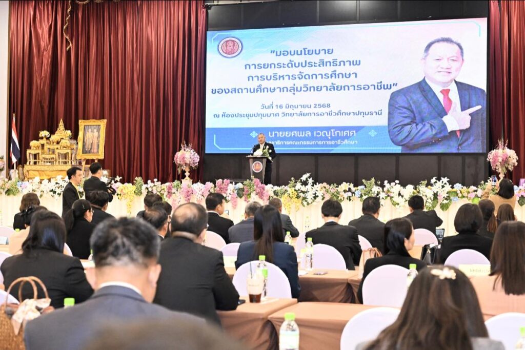 วันที่ 16 มิถุนายน 2568 นางศรัญญา สุขปลั่ง ผู้อำนวยการวิทยาลัยการอาชีพนครนายก พร้อมด้วย นางสาวปานรดา มุ่งยุทธกลาง รองผู้อำนวยการฝ่ายบริหารทรัพยากร วิทยาลัยการอาชีพนครนายก เข้าร่วมการประชุมมอบนโยบายและแนวทางการยกระดับประสิทธิภาพการบริหารจัดการศึกษาของสถานศึกษากลุ่มวิทยาลัยการอาชีพ โดยมีนายยศพล เวณุโกเศศ เลขาธิการคณะกรรมการการอาชีวศึกษา (เลขาธิการ กอศ.) เป็นประธานเปิดการประชุม ณ ห้องประชุมปทุมมาศ วิทยาลัยการอาชีวศึกษาปทุมธานี