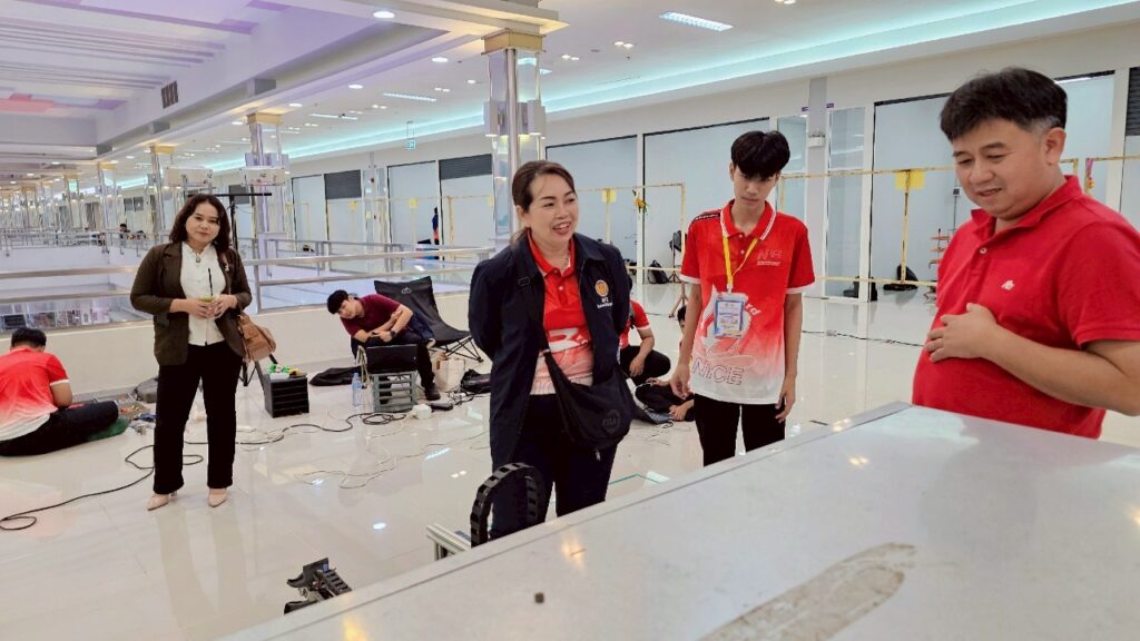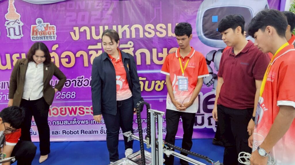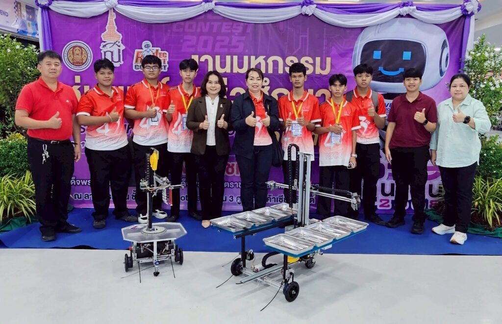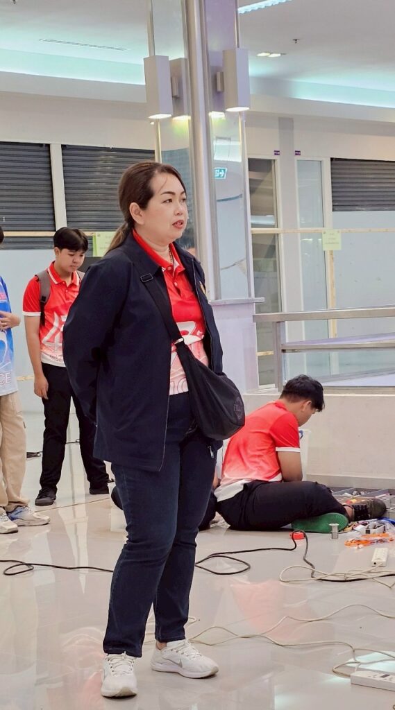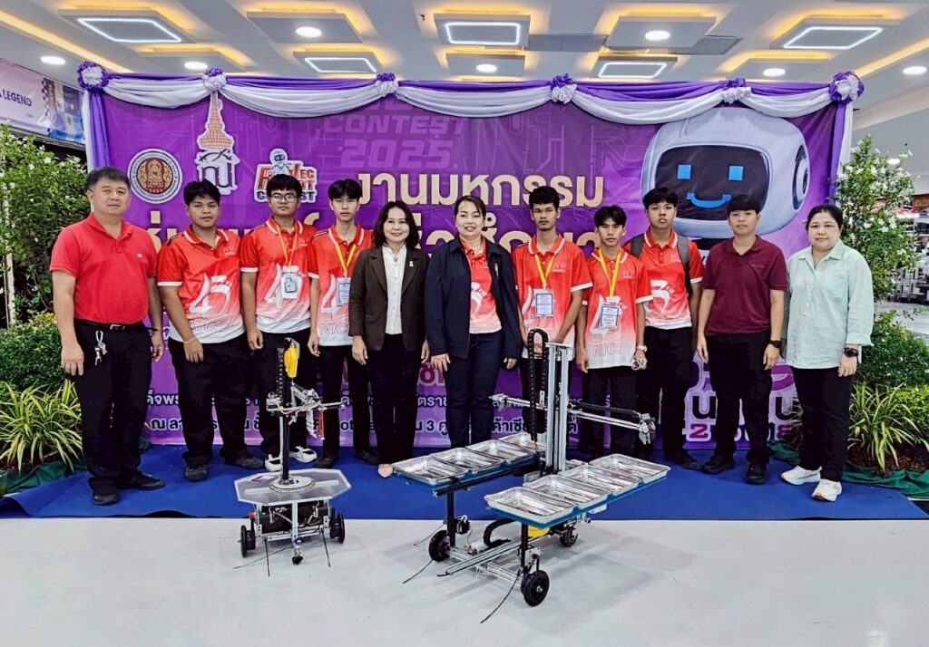 วันที่ 18 มิถุนายน 2568 นางศรัญญา สุขปลั่ง ผู้อำนวยการวิทยาลัยการอาชีพนครนายก พร้อมด้วย นางรติภัทร จันทร์ส่อง รองผู้อำนวยการฝ่ายแผนงานและความร่วมมือ ร่วมให้กำลังใจ คณะครู และนักเรียน นักศึกษา แผนกวิชาช่างไฟฟ้ากำลัง และแผนกวิชาช่างอิเล็กทรอนิกส์ วิทยาลัยการอาชีพนครนายก ในการร่วมการแข่งขันหุ่นยนต์อาชีวศึกษา ชิงถ้วยพระราชทานสมเด็จพระกนิษฐาธิราชเจ้า กรมสมเด็จพระเทพรัตนราชสุดาฯ สยามบรมราชกุมารี ในงานมหกรรมหุ่นยนต์อาชีวศึกษา ระดับชาติ ประจำพุทธศักราช 2568 ณ ลานโปรโมชั่น ชั้น 2 และ Robot Realm ชั้น 3 ศูนย์การค้าเซียร์ รังสิต