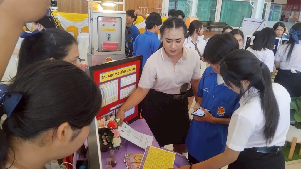 วันที่ 14 กรกฎาคม 2568 นางสาวชลญา อุทัย ครูแผนกวิชาสามัญสัมพันธ์ วิทยาลัยการอาชีพนครนายก พร้อมด้วย นายณัฐวุฒิ พึ่งแย้ม ครูที่ปรึกษา และนักเรียน ระดับประกาศนียบัตรวิชาชีพ (ปวช.) แผนกวิชาการบัญชี แผนกวิชาช่างอิเล็กทรอนิกส์ และนักศึกษา ระดับประกาศนียบัตรวิชาชีพชั้นสูง (ปวส.) แผนกวิชาการบัญชี วิทยาลัยการอาชีพนครนายก เข้าร่วมการประกวดโครงงานวิทยาศาสตร์อาชีวศึกษา ประจำปีการศึกษา 2568 ระดับภาค ภาคตะวันออกและกรุงเทพมหานคร ระหว่างวันที่ 14–16 กรกฎาคม 2568 ณ อาคารโดมอเนกประสงค์ วิทยาลัยเทคนิคปราจีนบุรี