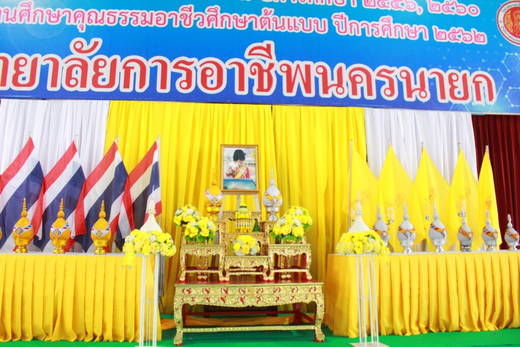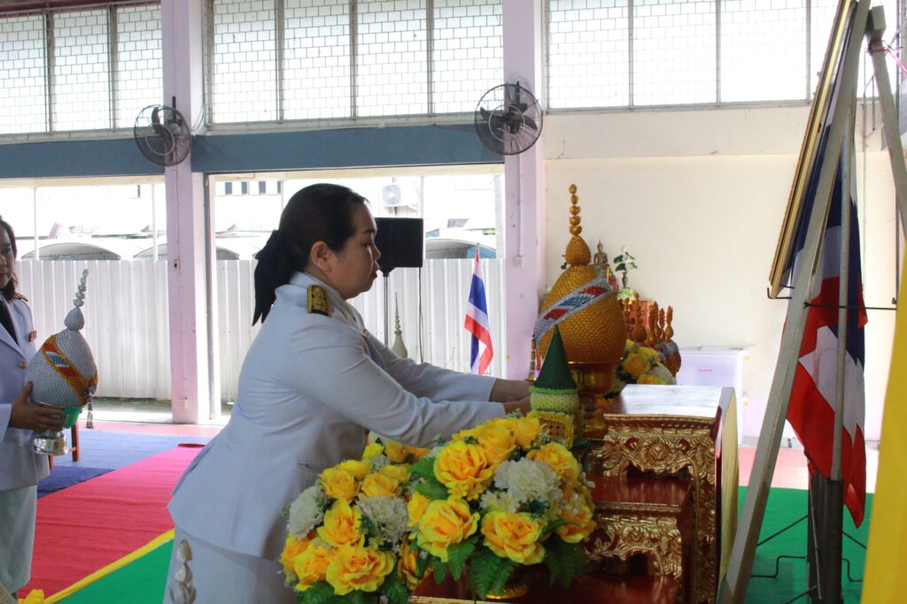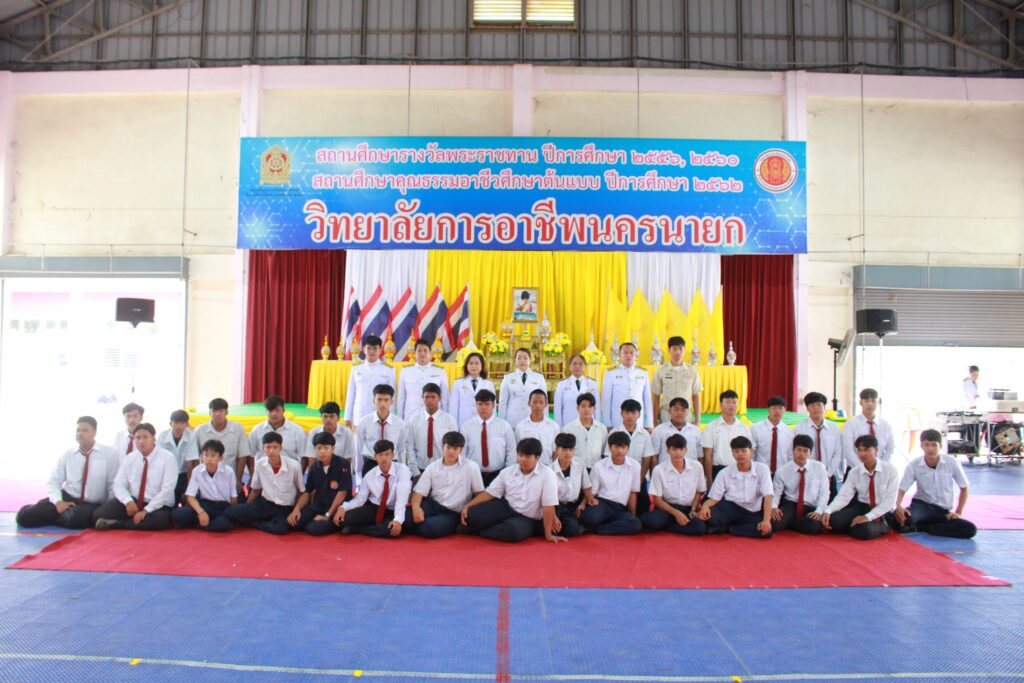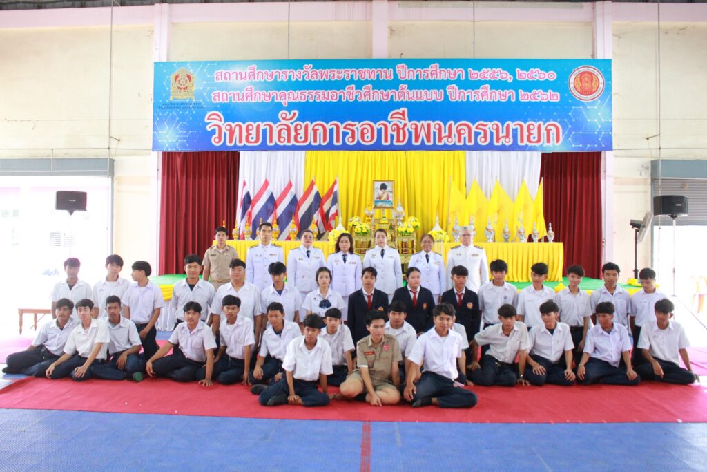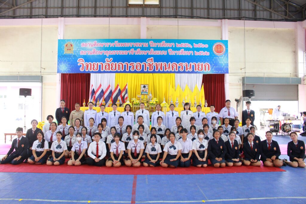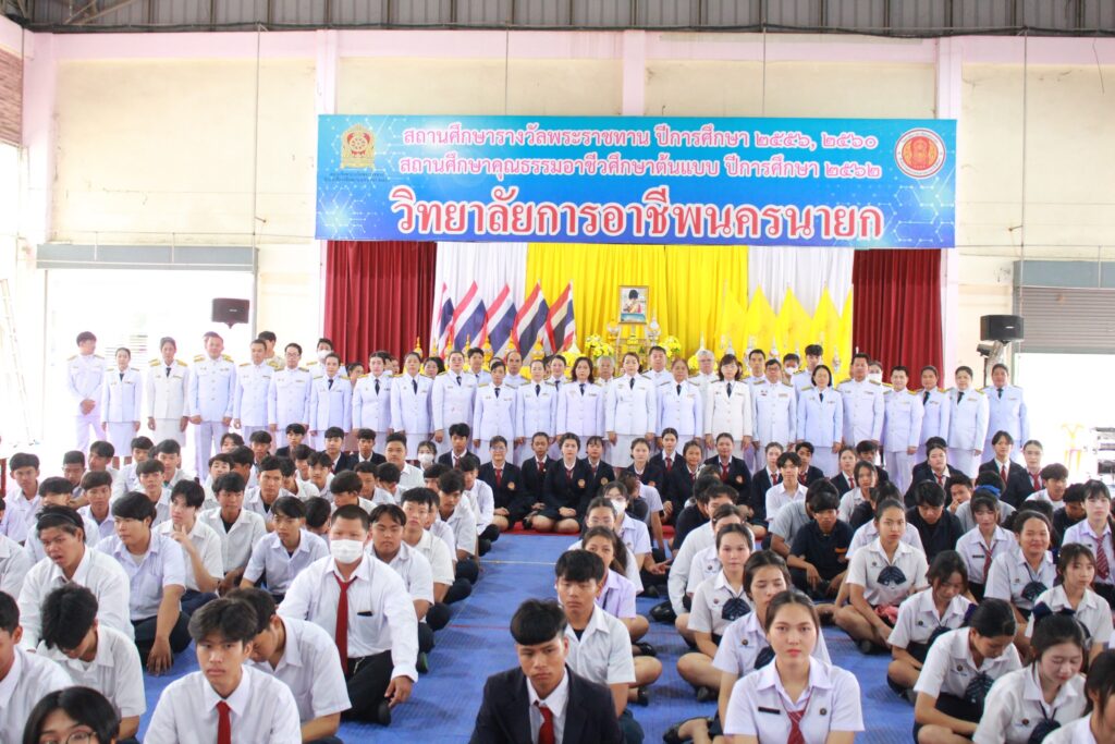 วันที่ 25 กรกฎาคม 2568 นางศรัญญา สุขปลั่ง ผู้อำนวยวิทยาลัยการอาชีพนครนายก พร้อมด้วย ผู้บริหาร คณะครู บุคลากรทางการศึกษา และนักเรียน นักศึกษา วิทยาลัยการอาชีพนครนายก ร่วมพิธีทำบุญตักบาตรเนื่องในวันเฉลิมพระชนมพรรษา พระบาทสมเด็จพระเจ้าอยู่หัว 28 กรกฎาคม 2568 ณ อาคารกีฬาอเนกประสงค์ วิทยาลัยการอาชีพนครนายก