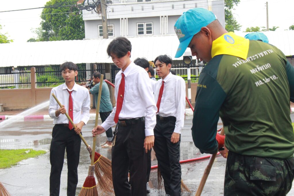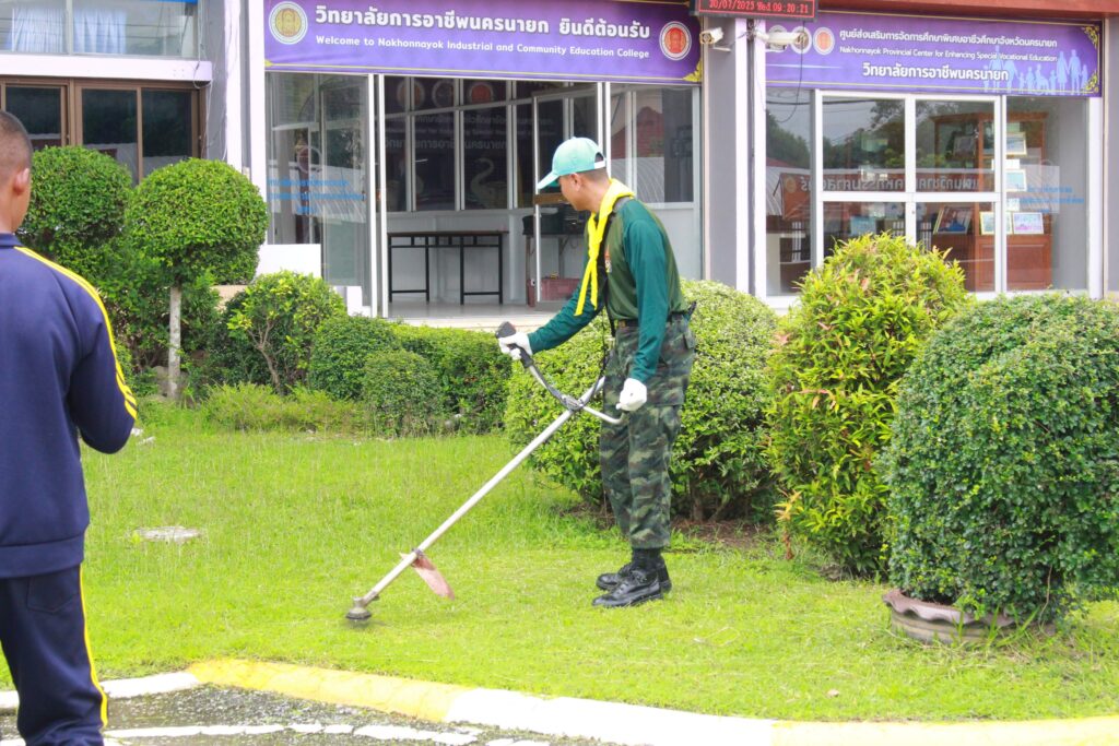 วันที่ 30 กรกฎาคม 2568 นางศรัญญา สุขปลั่ง ผู้อำนวยการวิทยาลัยการอาชีพนครนายก พร้อมด้วย คณะผู้บริหาร คณะครู บุคลากรทางการศึกษา และนักเรียน นักศึกษา วิทยาลัยการอาชีพนครนายก ร่วมกิจกรรมจิตอาสา “เราทำความ ดี ด้วยหัวใจ” จิตอาสาพัฒนา ทำความสะอาดสถานศึกษา โดยทางวิทยาลัยการอาชีพนครนายกได้รับความอนุเคราะห์ จากองค์การบริหารส่วนตำบลพรหมณี และกองพันทหารปืนใหญ่ ที่ 12 กรมทหารปืนใหญ่ ที่ 2 รักษาพระองค์ ที่ร่วมสนับสนุนกำลังพลในการทำกิจกรรมในครั้งนี้ ณ วิทยาลัยการอาชีพนครนายก