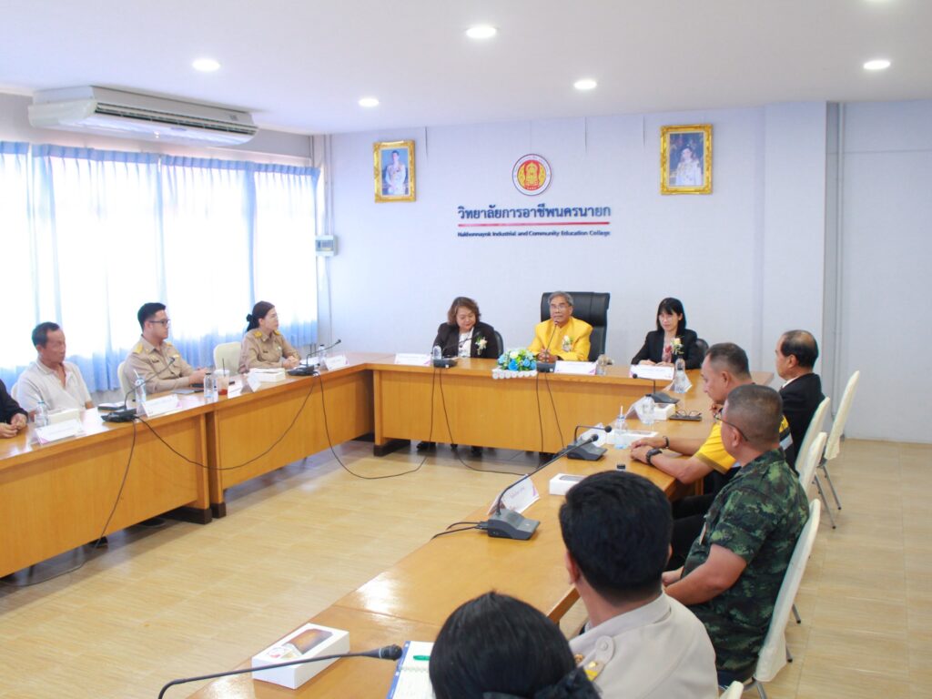 วันที่ 4 สิงหาคม 2568 วิทยาลัยการอาชีพนครนายก โดยคณะผู้บริหาร คณะครู บุคลากรทางการศึกษา วิทยาลัยการอาชีพนครนายก เข้าร่วมการตรวจเยี่ยมสถานศึกษาอาชีวศึกษาการประกันคุณภาพภาย นอกด้านอาชีวศึกษา ร่วมกับสถานศึกษา ณ ห้องปาริชาติ ชั้น 2 อาคารปาริชาติ วิทยาลัยการอาชีพนครนายก