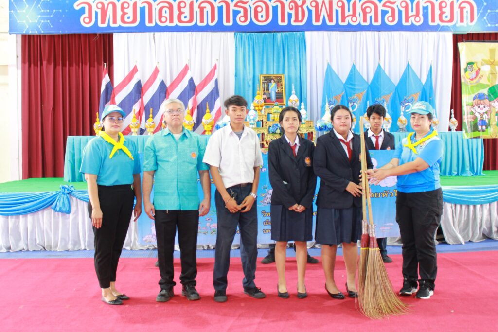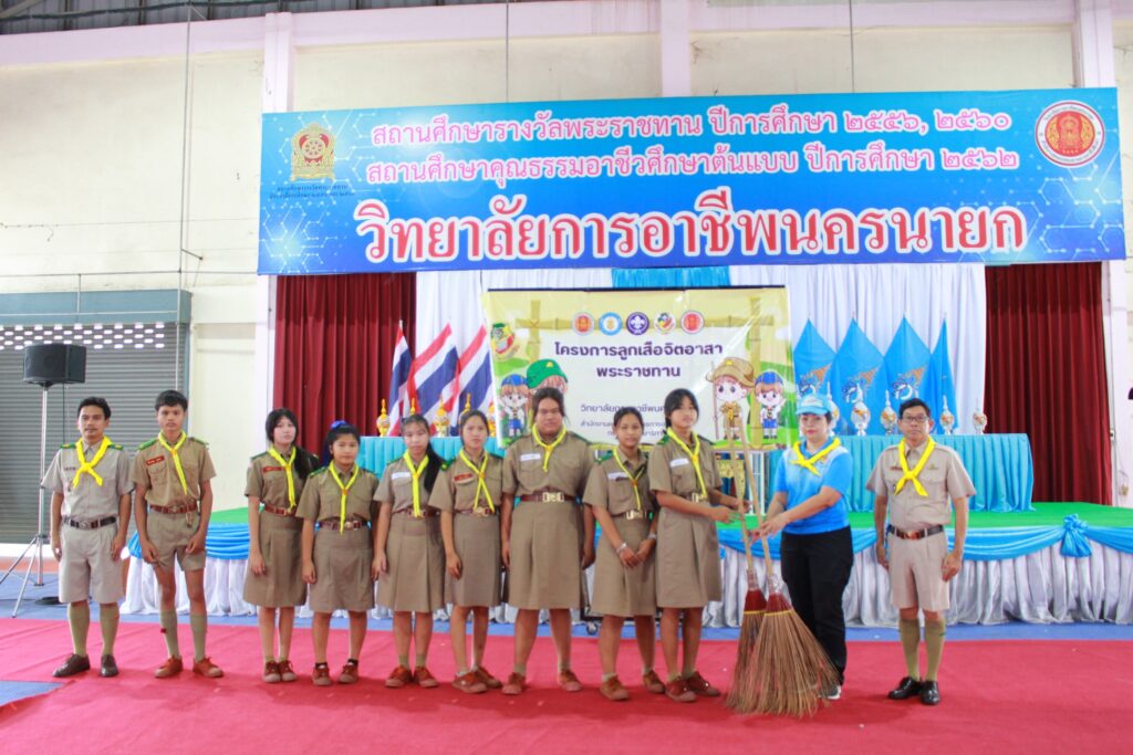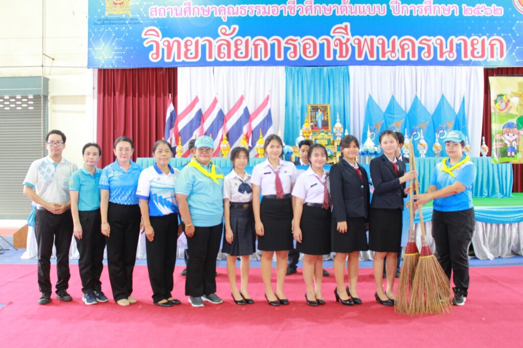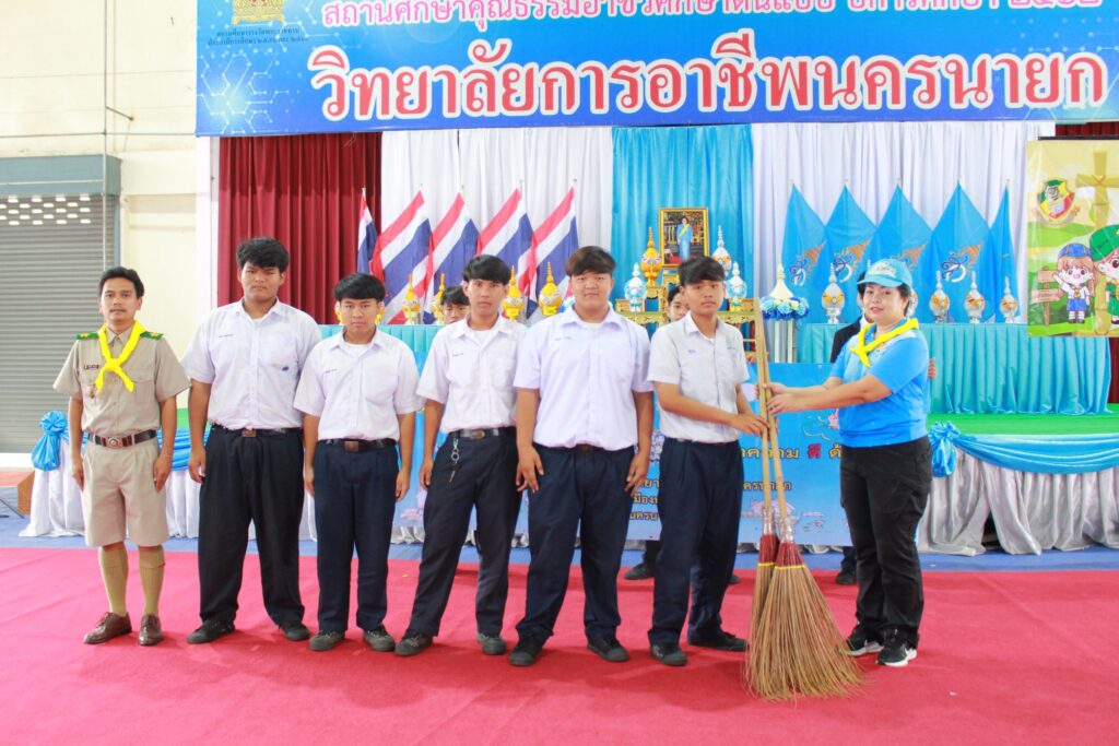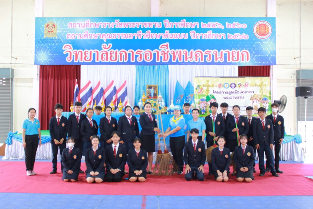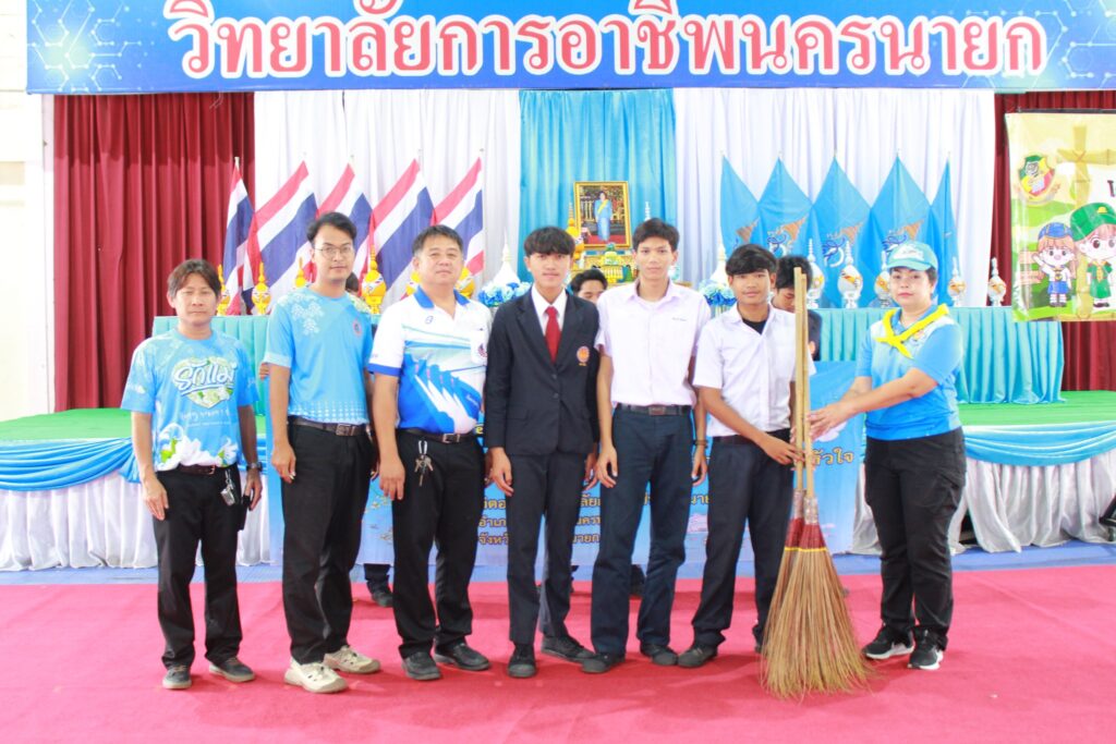 วันที่ 8 สิงหาคม 2568 นางศรัญญา สุขปลั่ง ผู้อำนวยการวิทยาลัยการอาชีพนครนายก พร้อมด้วย ผู้บริหาร คณะครู บุคลากรทางการศึกษา และนักเรียน นักศึกษา วิทยาลัยการอาชีพนครนายก เข้าร่วมพิธีถวายเครื่องราชสักการะและวางพานพุ่ม พิธีลงนามถวายพระพรชัยมงคลสมเด็จพระนางเจ้าสิริกิติ์ พระบรมราชินีนาถ พระบรมราชชนนีพันปีหลวงเนื่องในโอกาสมหามงคลวันเฉลิมพระชนมพรรษา 12 สิงหาคม 2568 และ กิจกรรมจิตอาสา ณ อาคารกีฬาอเนกประสงค์ วิทยาลัยการอาชีพนครนายก