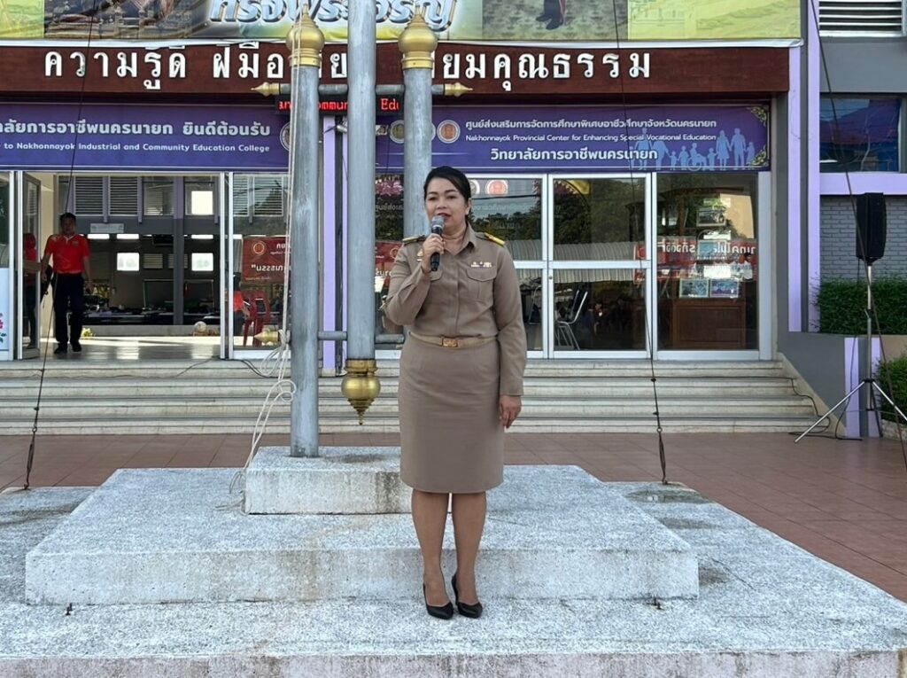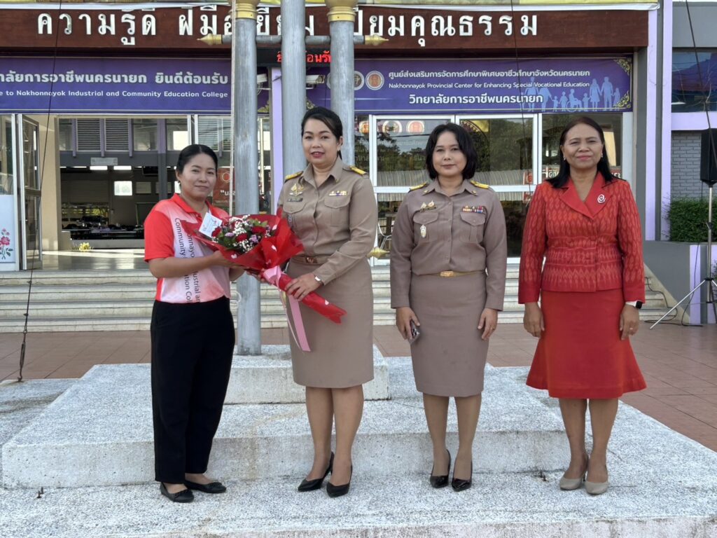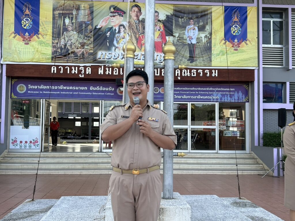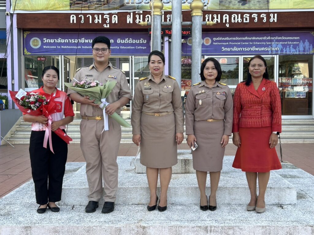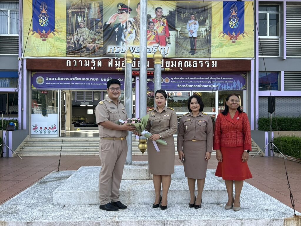 วันที่ 13 สิงหาคม 2568 นางศรัญญา สุขปลั่ง ผู้อำนวยการวิทยาลัยการอาชีพนครนายก พร้อมด้วย ผู้บริหาร คณะครู บุคลากรทางการศึกษา และนักเรียน นักศึกษา ร่วมแสดงยินดีและยินดีต้อนรับ คุรครูถิรวัฒน์ อินทาราม เนื่องในโอกาสเข้ารับการบรรจุและแต่งตั้ง ตำแหน่ง พนักงานราชการครู กลุ่มวิชาภาษาอังกฤษ แผนกวิชาสามัญสัมพันธ์ และนางสาวฐาณัชชา ร่มโพธิ์ เนื่องในโอกาสเข้ารับการบรรจุและแต่งตั้ง ตำแหน่ง พนักงานราชการ งานบริหารทั่วไป ณ หน้าเสาธง วิทยาลัยการอาชีพนครนายก