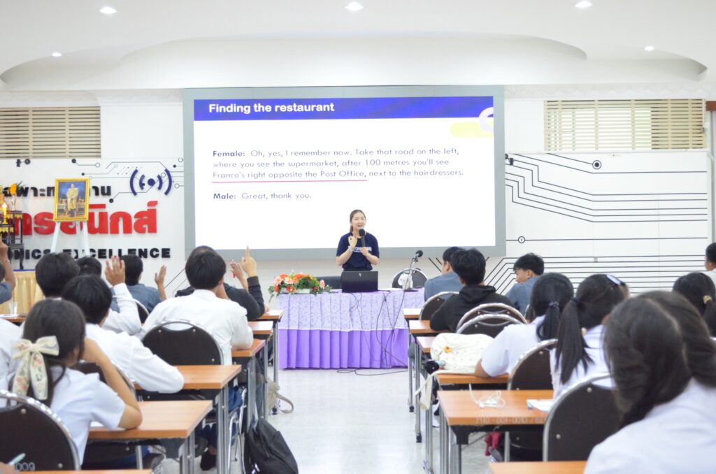 วันที่ 14 สิงหาคม 2568 นางสาวปานรดา มุ่งยุทธกลาง รองผู้อำนวยการฝ่ายวิชาการ พร้อมด้วย นางภัคจิรา จิตรมิตร หัวหน้าแผนกวิชาสามัญสัมพันธ์ นักเรียน นักศึกษา วิทยาลัยการอาชีพนครนายก เข้าร่วมโครงการอบรมเชิงปภิบัติการยกระดับและพัฒนาขีดความสามารถด้านภาษาและพัฒนาทักษะดิจิทัลเพื่อพัฒนากําลังคน ให้มีสมรรถนะสูง สอดรับกับมาตรฐานสากล กิจกรรมย่อยที่ 1.1 การยกระดับและเพิ่มศักยภาพทางภาษา (CEFR) ให้กับนักเรียน นักศึกษา ณ ห้องประชุมสาริกา ชั้น 4 แผนกวิชาอิเล็กทรอนิกส์ วิทยาลัยเทคนิคนครนายก