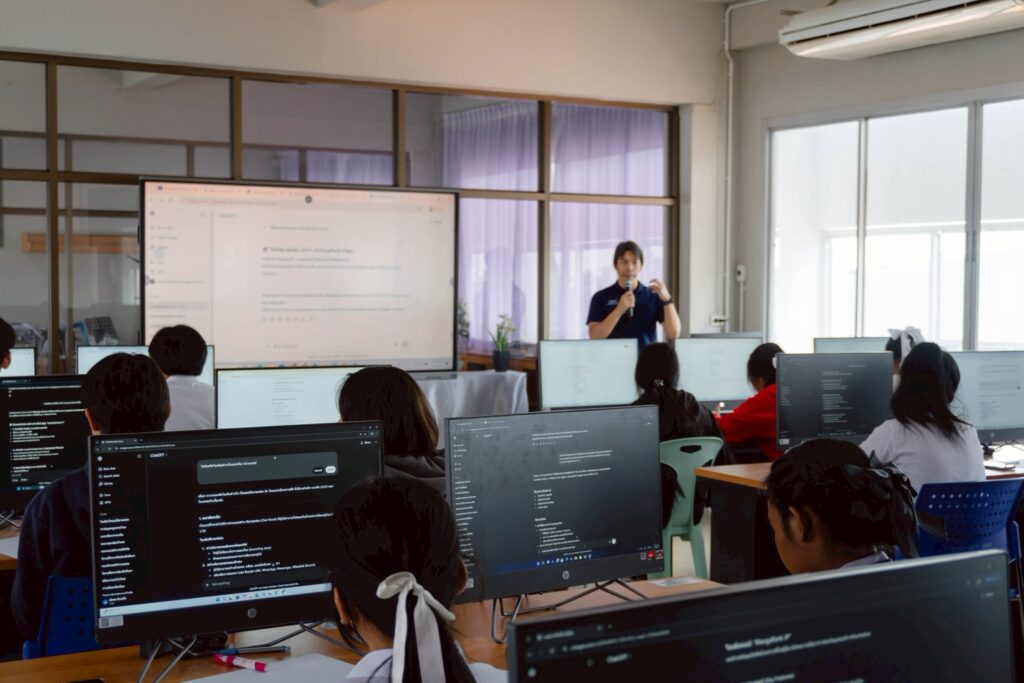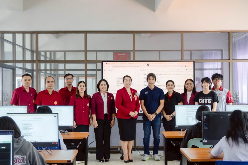 วันที่ 15 สิงหาคม 2568 นางศรัญญา สุขปลั่ง ผู้อำนวยการวิทยาลัยการอาชีพนครนายก พร้อมด้วย ผู้บริหาร คระครู แผนกวิชาเทคโนโลยีธุรกิจดิจิทัล และนักเรียน นักศึกษา แผนกวิชาเทคโนโลยีธุรกิจดิจิทัลวิทยาลัยการอาชีพนครนายก เข้าร่วมการอบรมเชิงปฏิบัติการการใช้งานและการพัฒนาแอปพลิเคชั่นด้วย ChatGPT ภายใต้การดำเนินงานโครงการเสริมสร้างความรู้ด้วยผู้เชี่ยวชาญภูมิปัญญาท้องถิ่น โดย ดร.สุภัคพงศ์ จินารัตน์ ณ ห้องปฏิบัติการคอมพิวเตอร์ แผนกวิชาเทคโนโลยีธุรกิจดิจิทัล อาคารวิทยบริการ วิทยาลัยการอาชีพนครนายก